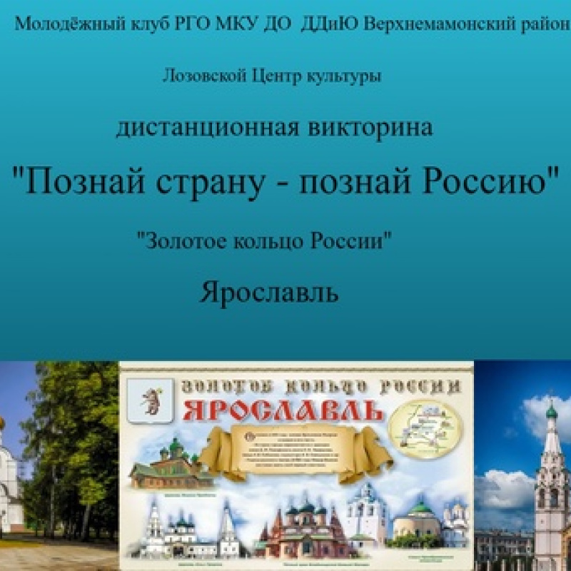 ОНЛАЙН-ВИКТОРИНА «ПОЗНАЙ СТРАНУ – ПОЗНАЙ РОССИЮ. ЗОЛОТОЕ КОЛЬЦО РОССИИ. ЯРОСЛАВЛЬ»
