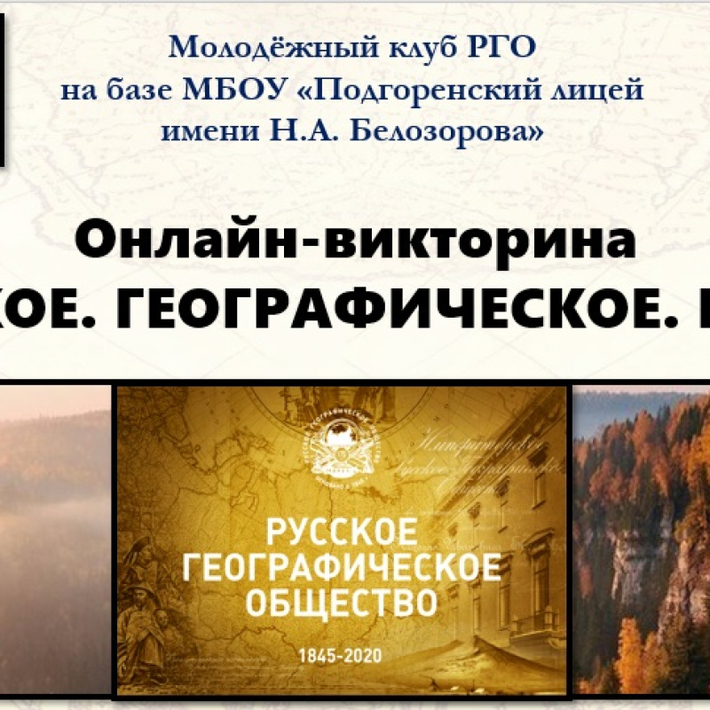 Молодёжный клуб Русского географического общества на базе Подгоренского лицея имени Н.А. Белозорова приглашает представителей Клубов принять участие в научно-практической конференции «Наше наследие...