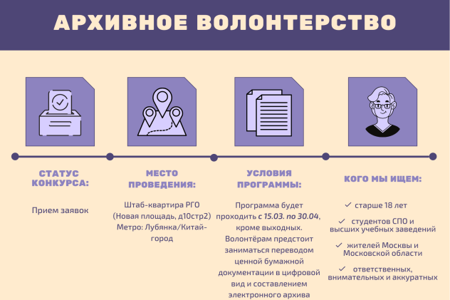 Русское географическое общество приглашает добровольцев принять участие в волонтёрской программе Исполнительной дирекции РГО "Архивное волонтерство". Она пройдёт с 15 марта по 30 апреля в Штаб-квартире Русского географического общества в Москве.