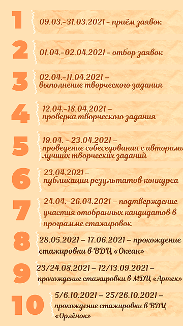 Со сроками приёма заявок и датами проведения стажировки можно ознакомиться ниже: