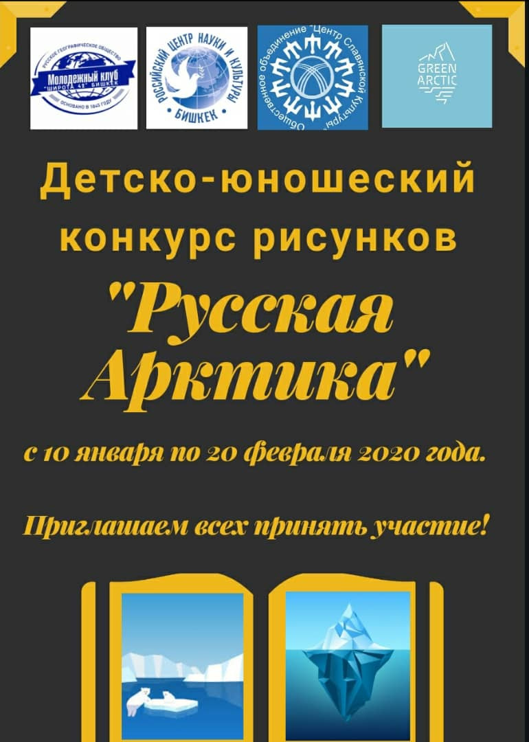 Молодежный клуб РГО при поддержке Россотрудничества в Кыргызстане, Общественного Объединения «Центр Славянской Культуры» и Межрегиональной общественной эко-социологической организации «Зелёная Арктика» организуют конкурс детско-юношеских рисунков по всей республике.