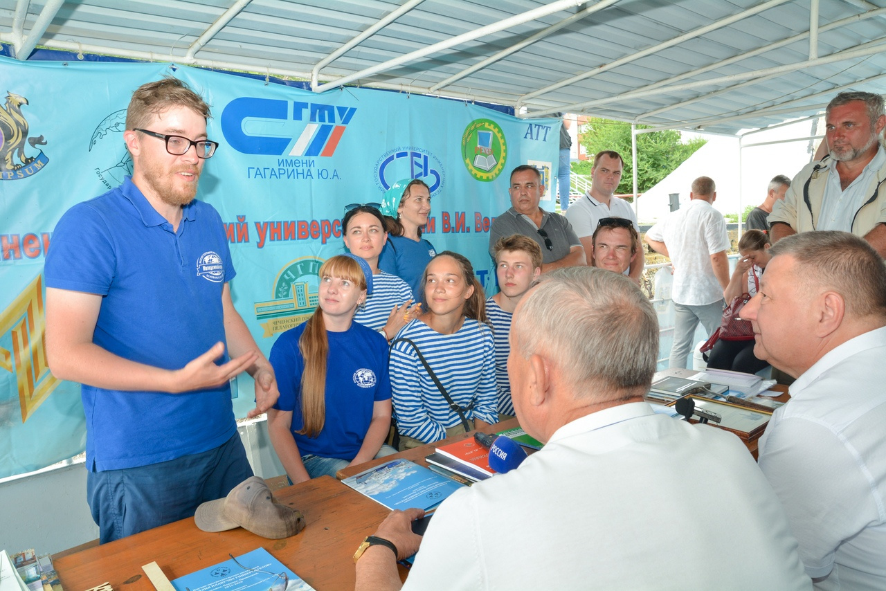 На борту НИС «Бриз» во время стоянки на набережной г. Саратова 9 июля состоялся круглый стол «Взаимодействие научно-образовательного, музейного и медийного сообществ в формате научно-образовательной экспедиции «Флотилия плавучих университетов», посвященный 60-летию научно-популярной передачи «Не за тридевять земель». С приветственными словами к участникам обратились председатель Саратовской областной Думы А.С. Романов и президент СГТУ имени Ю.А. Гагарина Д.Ф. Аяцков. Были развернуты для всех желающих выставка работ «Плавучей научно-художественной школы», выставка научных, учебных и научно-популярных работ от «Плавучей университетской библиотеки».