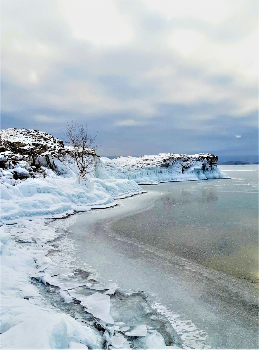 Байкал превращается в самый большой каток на планете, площадью с Бельгию. Замерзает он практически полностью, за исключением небольшого участка, где в него впадает Ангара. После прочного ледостава поверхность озера напоминает зеркало, а здешние пейзажи потрясают воображение как вживую, так и на фото. Лед Байкала настолько прочен, что по нему спокойно ездят внедорожники. Кстати, в 1904 году по льду озера ходил поезд по специально сооруженной зимней железной дороге.