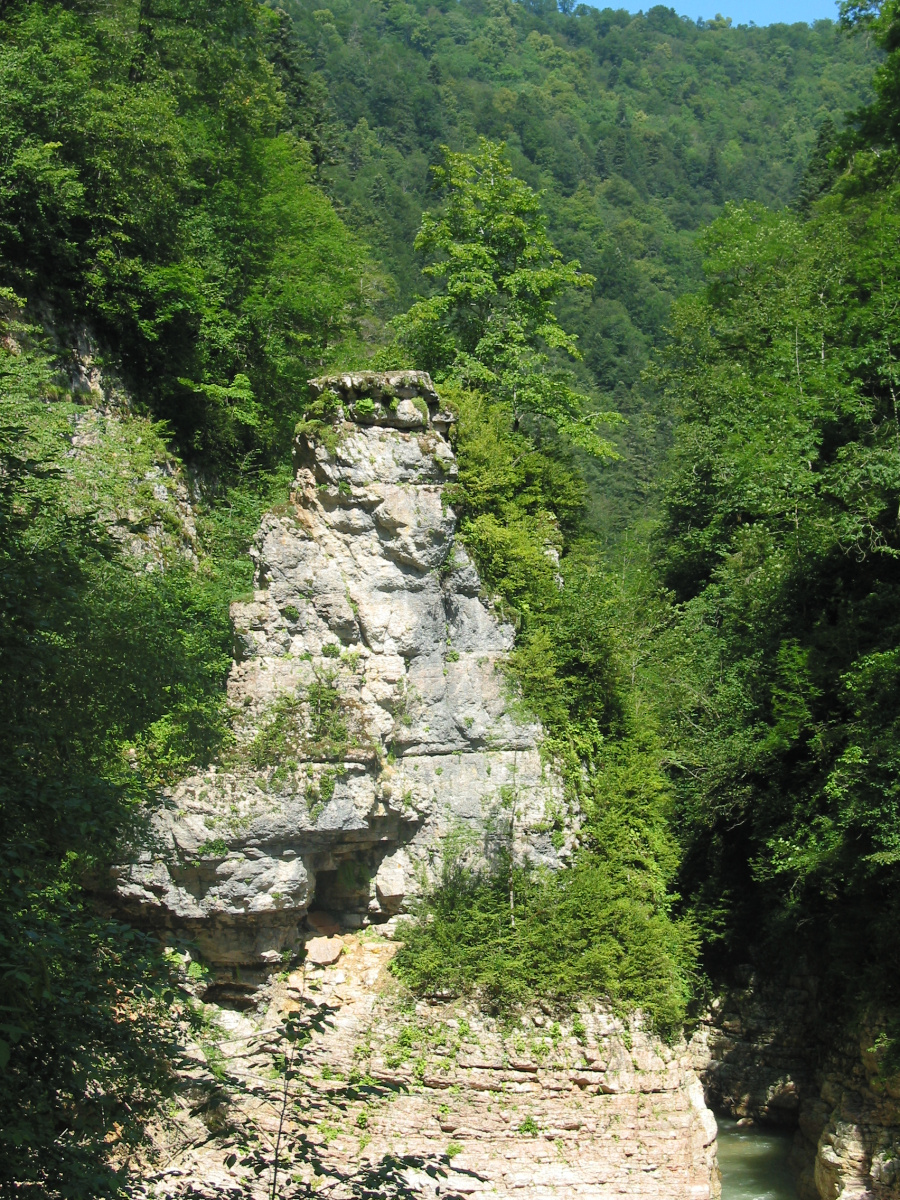 7. Юго-западную часть Апшеронского района называют Диким Западом. Когда попадаешь сюда, кажется, что время остановилось, и ты оказался в уникальном, нетронутом человеком уголке природы. Это место особенно привлекательно для жителей больших городов, уставших от повседневной суеты и быстрого темпа жизни. Роскошные горы и лес, быстрая и прозрачная река Пшеха, обрывистые Волчьи ворота – ущелье, в котором в годы Великой Отечественной войны были остановлены немецко-фашистские захватчики, величественная скала Собор – все это создает глубокое впечатление, навсегда остающееся в памяти всякого, кто хоть однажды побывал в этом сказочном уголке нашего района.