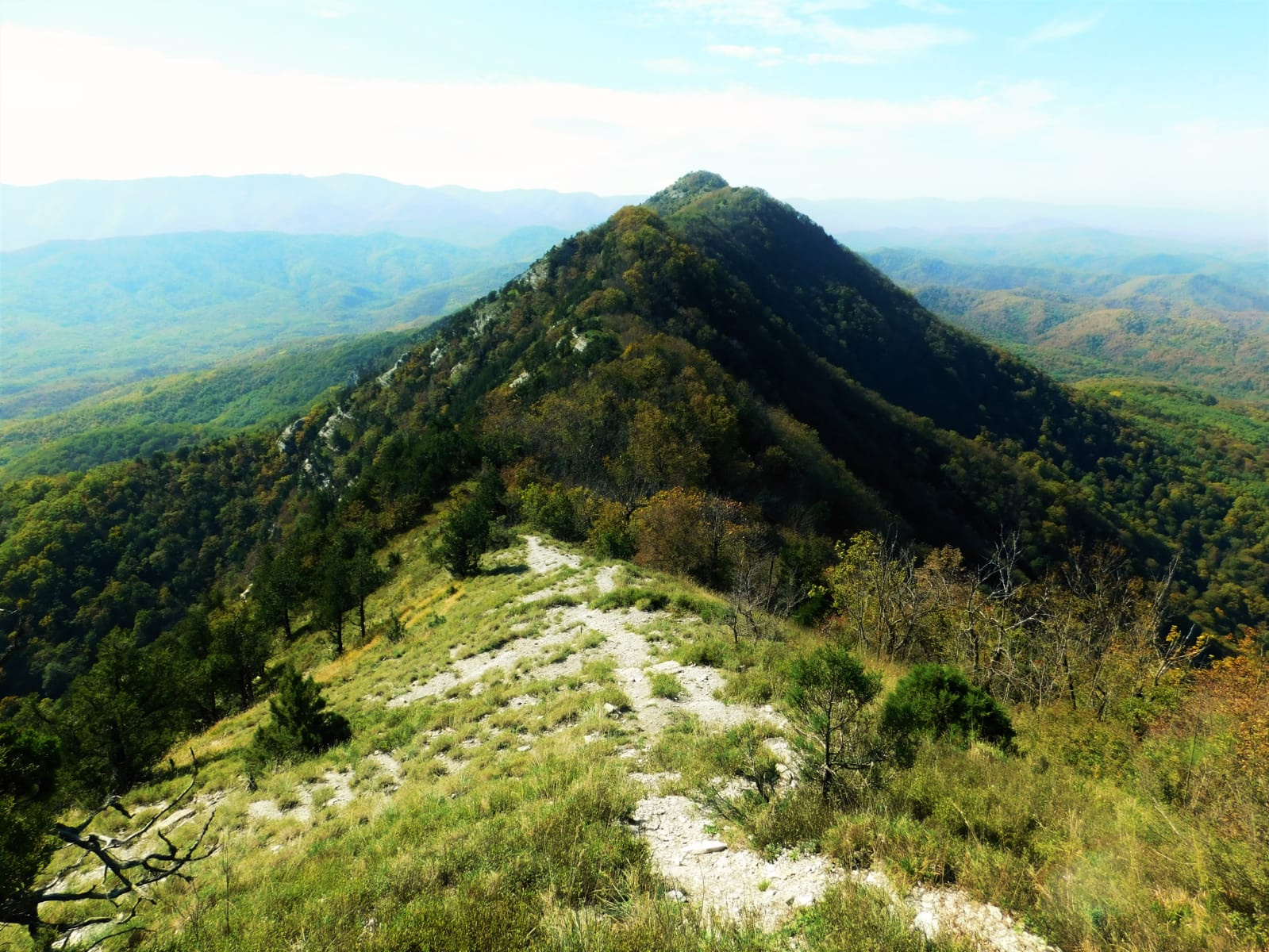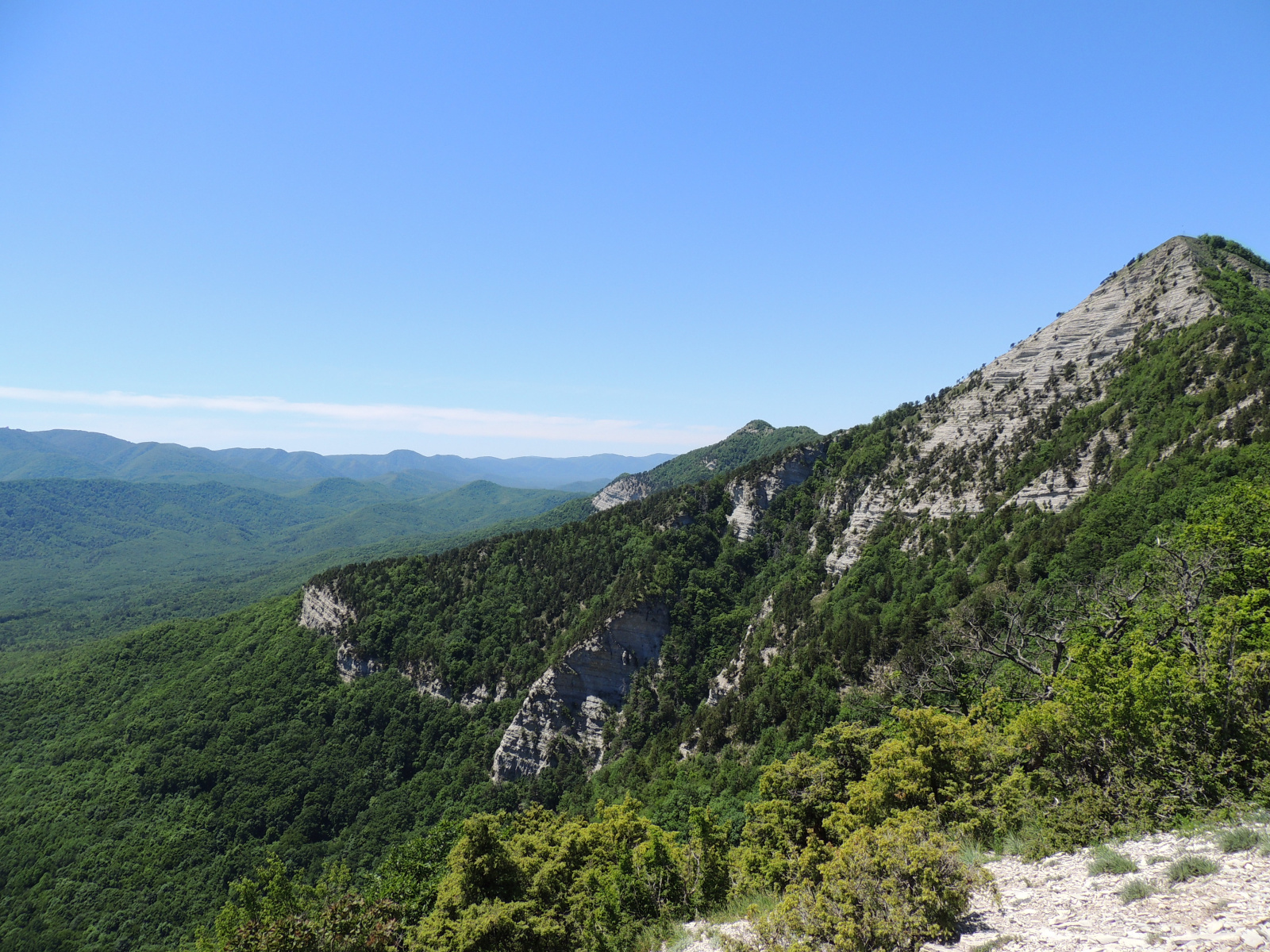 5. На вершине Главного Папая открывается величественная панорама, откуда можно увидеть все самые красивые горы северо-западного Кавказа: хребет Дерби с высшей точкой горой Убин-Су, Собер-Баш, хребет Коцехур, можно разглядеть скальный ансамбль Монастырей Краснодарские столбы, гора Пшада, Большой Афипс и скалы Желтые Монастыри.