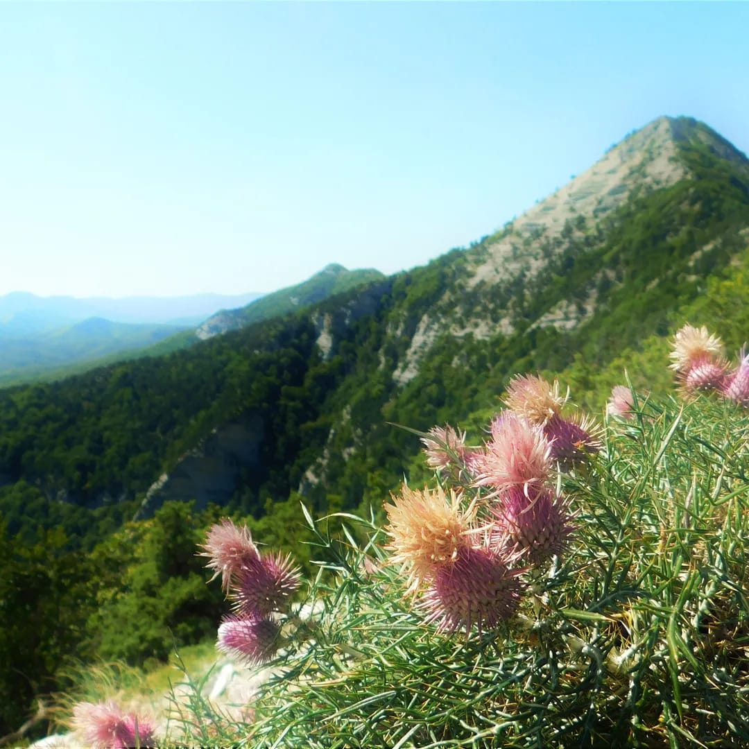 2. Есть еще одно сходство горы Папай с вершинами Древней Эллады. Это средиземноморская растительность Папая, среди которых есть растения, которые можно встретить на скалах Эгейского моря или Черноморского побережья Кавказа. Гора Папай – это рефугиум средиземноморской флоры. Здесь произрастают различные виды можжевельника: вонючий, высокий и красный. На вершине можно встретить степные сообщества, например, ковыль. Произрастают жасмин кустарниковый, ятрышник пурпурный, полынь альпийская, понтийский рододендрон. Часто жасмин кустарниковый в сочетании с ковылем красивейшим и типчаком образуют редкие смешанные сообщества, характерные только для средиземноморья. На Папае можно встретить красивое, но опасное растение – ясенец Кавказский. Нахождение на Папае эремуруса представительного, редкого вида, занесенного в Красную книгу Россий, удивительное явление. Эндемик, сохранившийся после оледенения – пион тонколистный, произрастает на горе Папай.