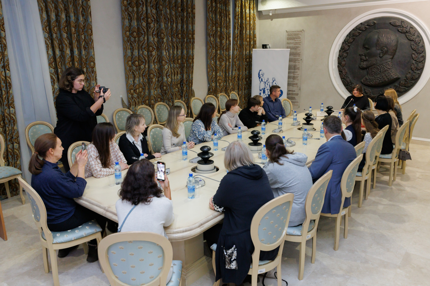 В рамках круглого стола Яна Федосова поделилась со слушателями, в том числе и школьниками, информацией о деятельности Общества и проектах. Прежде всего аудитория узнала, что Постоянная природоохранительная комиссия РГО организовала экспедиции для изучения России и в результате их работы 11 января 1917 года был основан первый заповедник — Баргузинский..