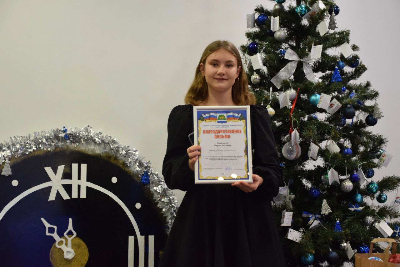 Мария награждена Благодарственным письмом главы за личный вклад и соучастие в реализации молодежных проектов в сфере развития добровольчества и содействия в реализации молодежных социально-значимых инициатив.