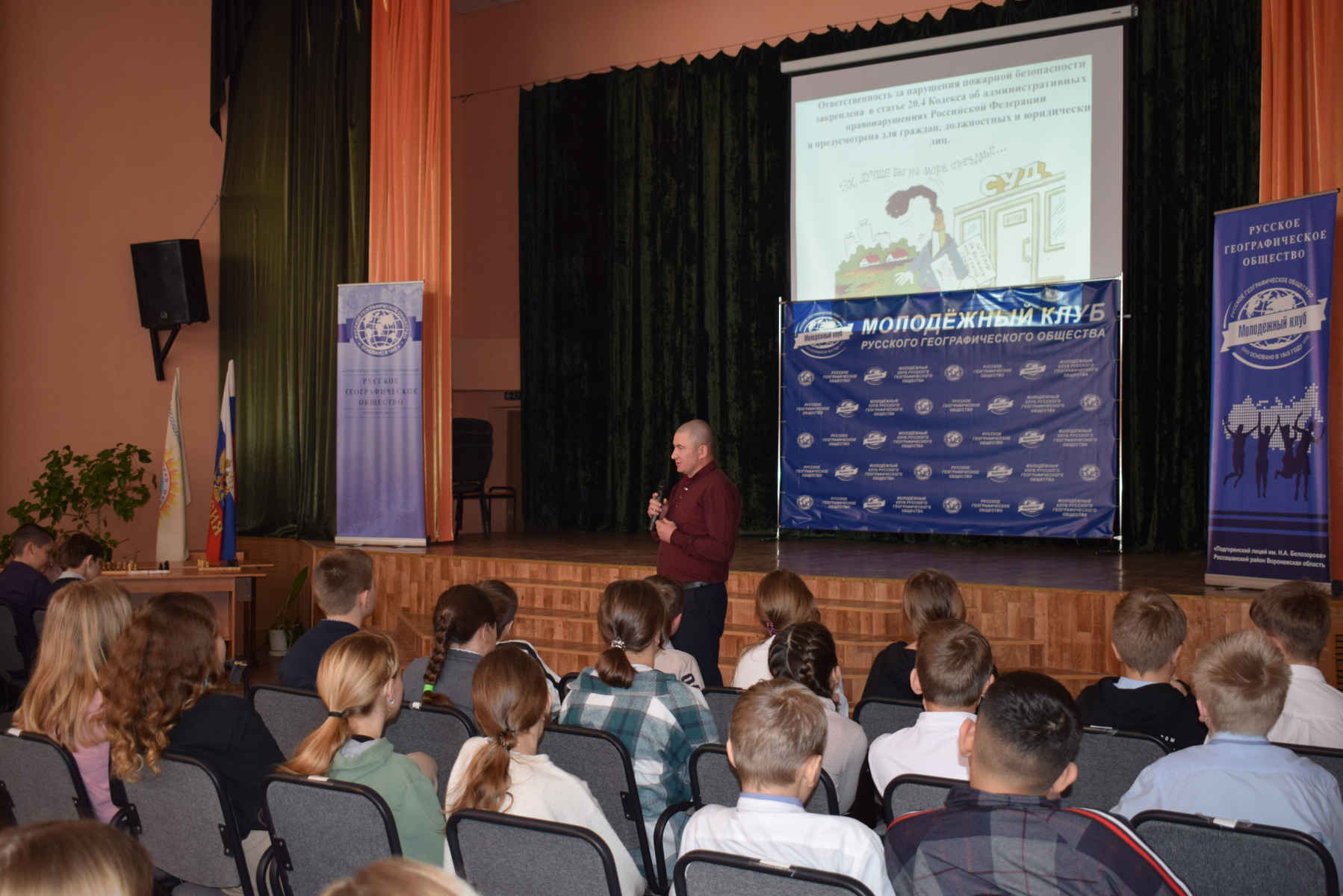 30 марта на базе Подгоренского лицея имени Н.А.Белозорова состоялась интерактивная лекция "Сохраним природу родного края", в которой приняли участие более 130 активистов Молодежного клуба РГО, а в качестве эксперта и почетного гостя выступил Александр Николаевич Омельченко – Главный специалист по охране окружающей среды администрации Россошанского муниципального района Воронежской области.