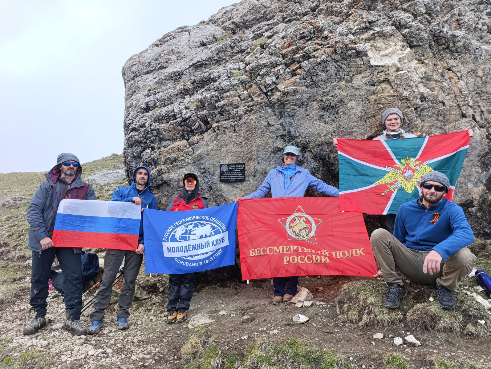 Активисты Молодёжного центра Русского географического общества Кабардино-Балкарской Республики установили памятную плиту на высокогорном перевале Хазнивцек и развернули знамя «Бессмертного полка» ко Дню Победы в Великой Отечественной войне.