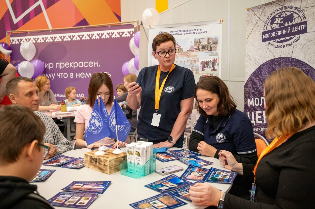 На тематической площадке активисты Центра представили программу, посвящённую деятельности Русского географического общества и Молодёжного центра РГО НАО. Особое внимание посетителей привлекло краеведческое лото «Наш НАО», разработанное при поддержке Отделения РГО в Ненецком автономном округе. В интерактивной форме участники узнавали интересные факты о географии, топонимике и истории региона — многие сведения вызывали у посетителей искреннее удивление.