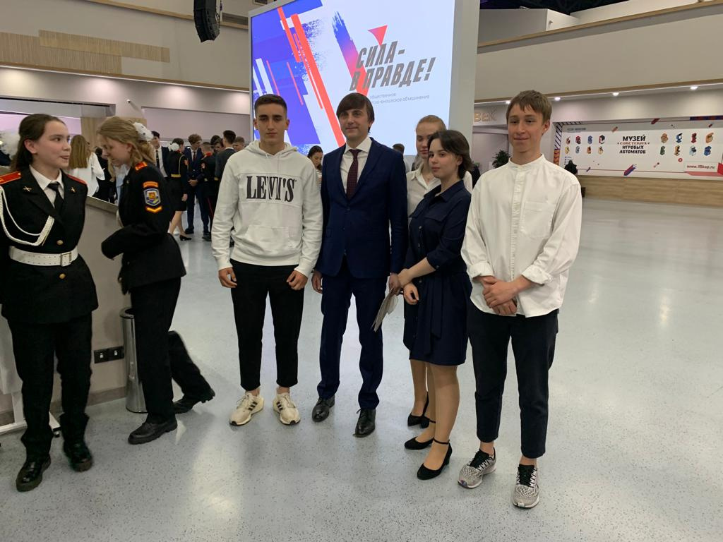 11 мая на площадке исторического парка "Россия – Моя история" на ВДНХ состоялась встреча Министра просвещения Сергея Кравцова со школьниками, интересующимися историей нашей страны в рамках детско-юношеского проекта "Сила в правде!".