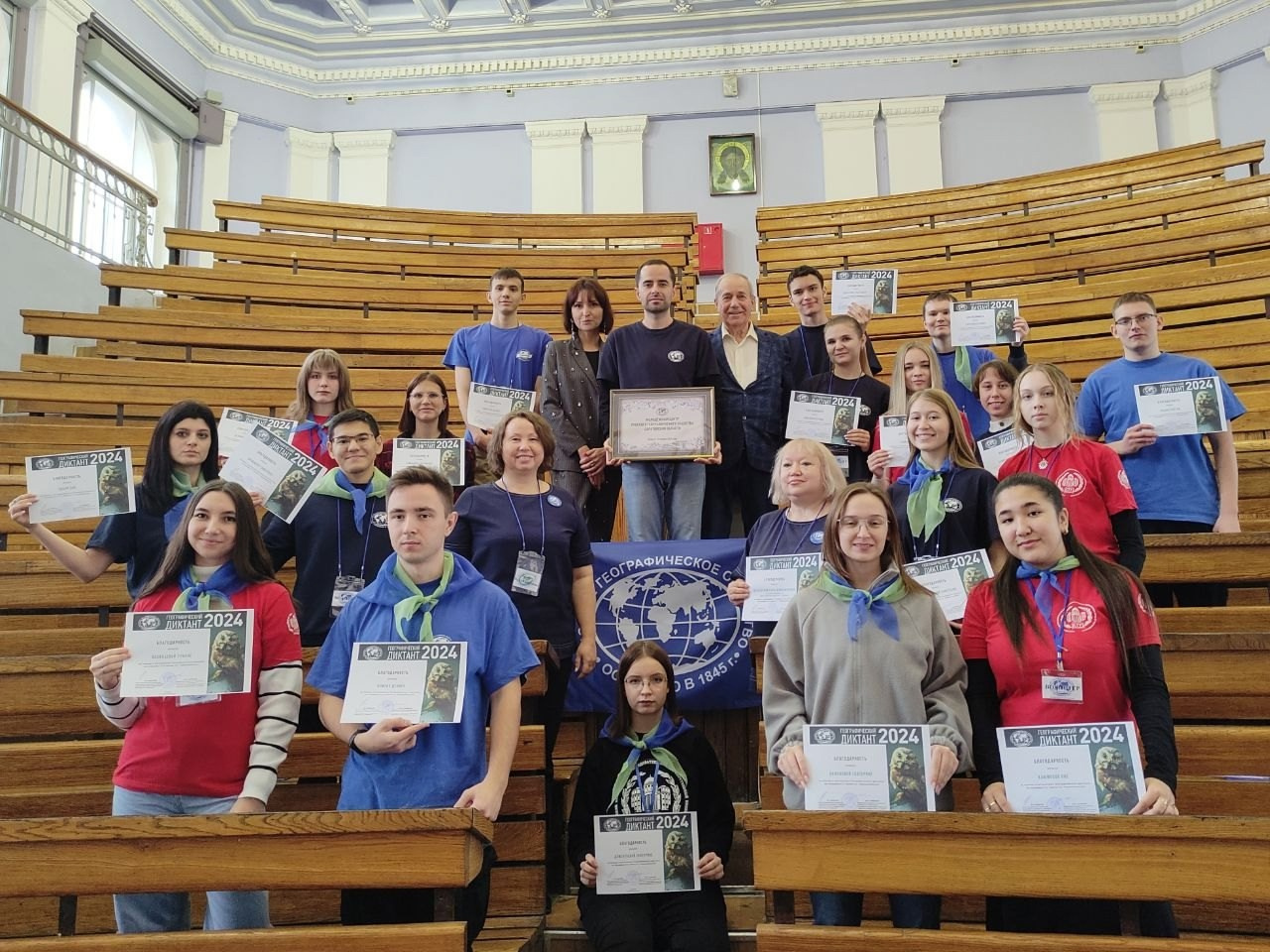 В завершение диктанта организаторы в лице СГУ имени Н.Г. Чернышевского, Саратовского областного отделения РГО и Молодёжного клуба РГО, организованного на его базе, поблагодарили всех, кто принял участие в подготовке и проведении акции. Активистов Молодёжного клуба РГО наградили благодарностями и памятными призами.