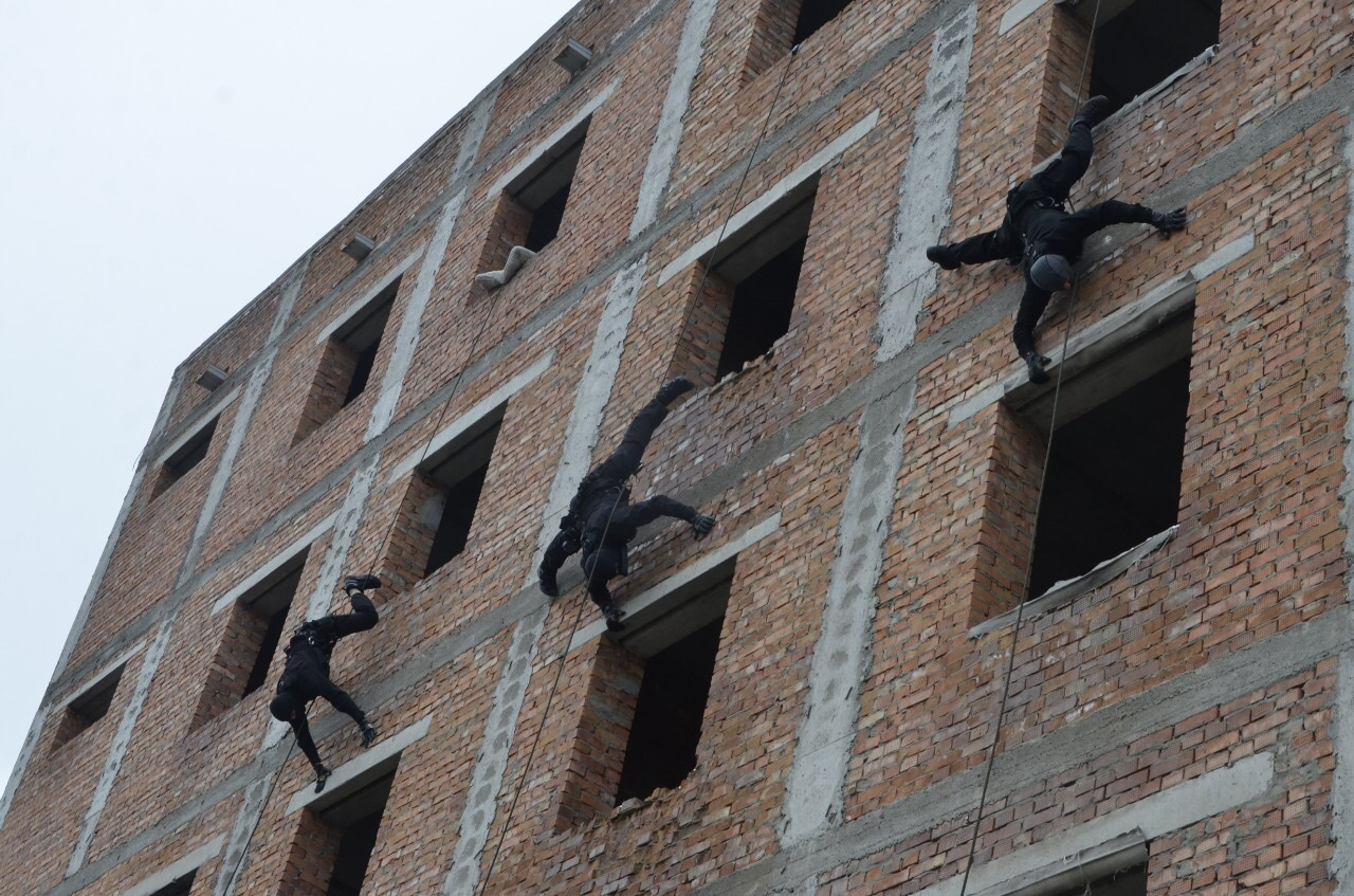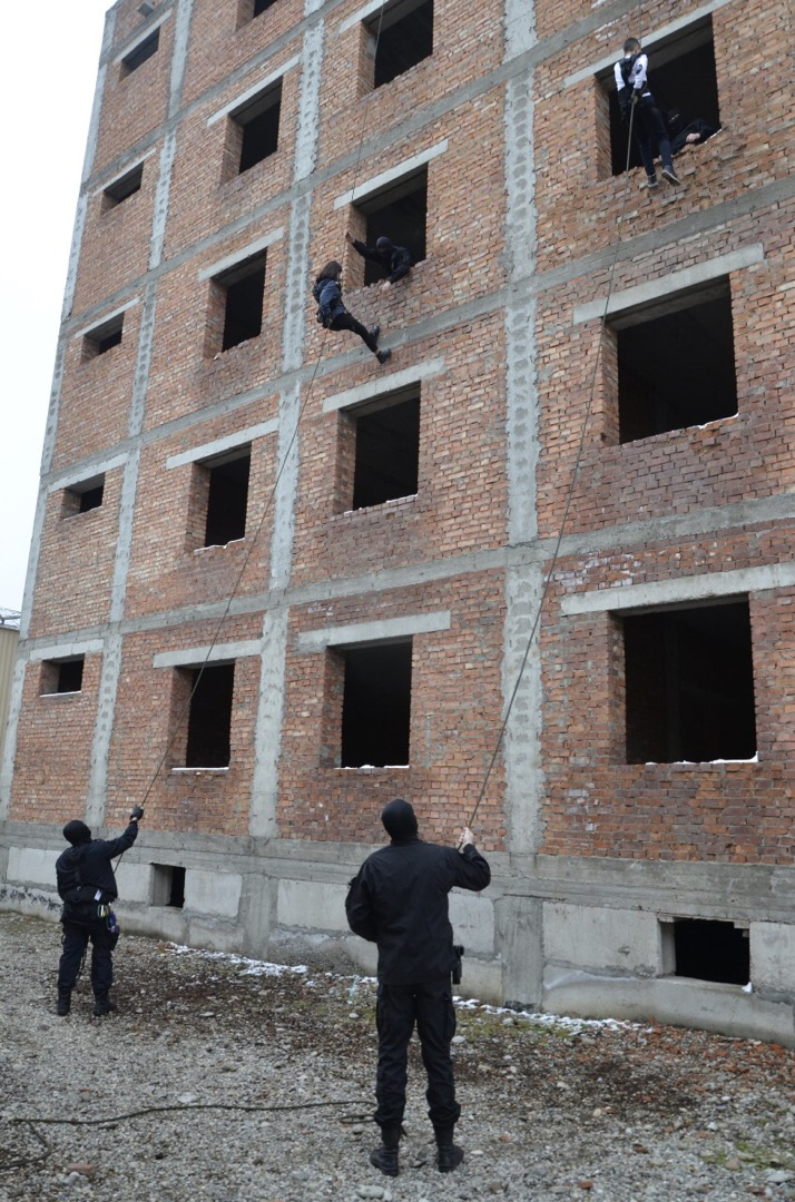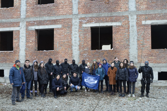 Активисты молодёжки, имея первичную альпинистскую и скалолазную подготовку, продемонстрировали навыки по работе со снаряжением: поднялись по вертикально провешенной веревке на четвертый этаж здания в спелеологической и альпинистской системах. Под присмотром инструкторов ребята также совершили спуск с третьего этажа здания, используя «спецназовские» обвязки и спусковые устройство типа «восьмерка».