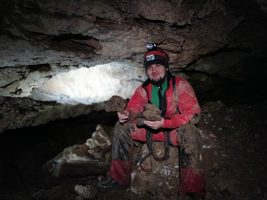 Зимой река замерзает, а прорубленный проход во льду дает возможность спуска вниз практически без воды. Внизу пещера разделяется на сухой коридор и русло небольшой реки. Участники экспедиции прошли в нижнюю часть пещера, до места, где река уходит в природный сифон. Далее активисты клуба «Альтаир» прошли в сухую часть пещеры до обвального зала, в одном из углов которого наткнулись на кости древнего и крупного млекопитающего, предположительно южного слона, или зубра, возрастом до 50 тыс. лет. В пещеру кости либо смыло водой, либо много тысячелетий назад существовал доступный вход, и животное само зашло в недоступные сегодня глубины.