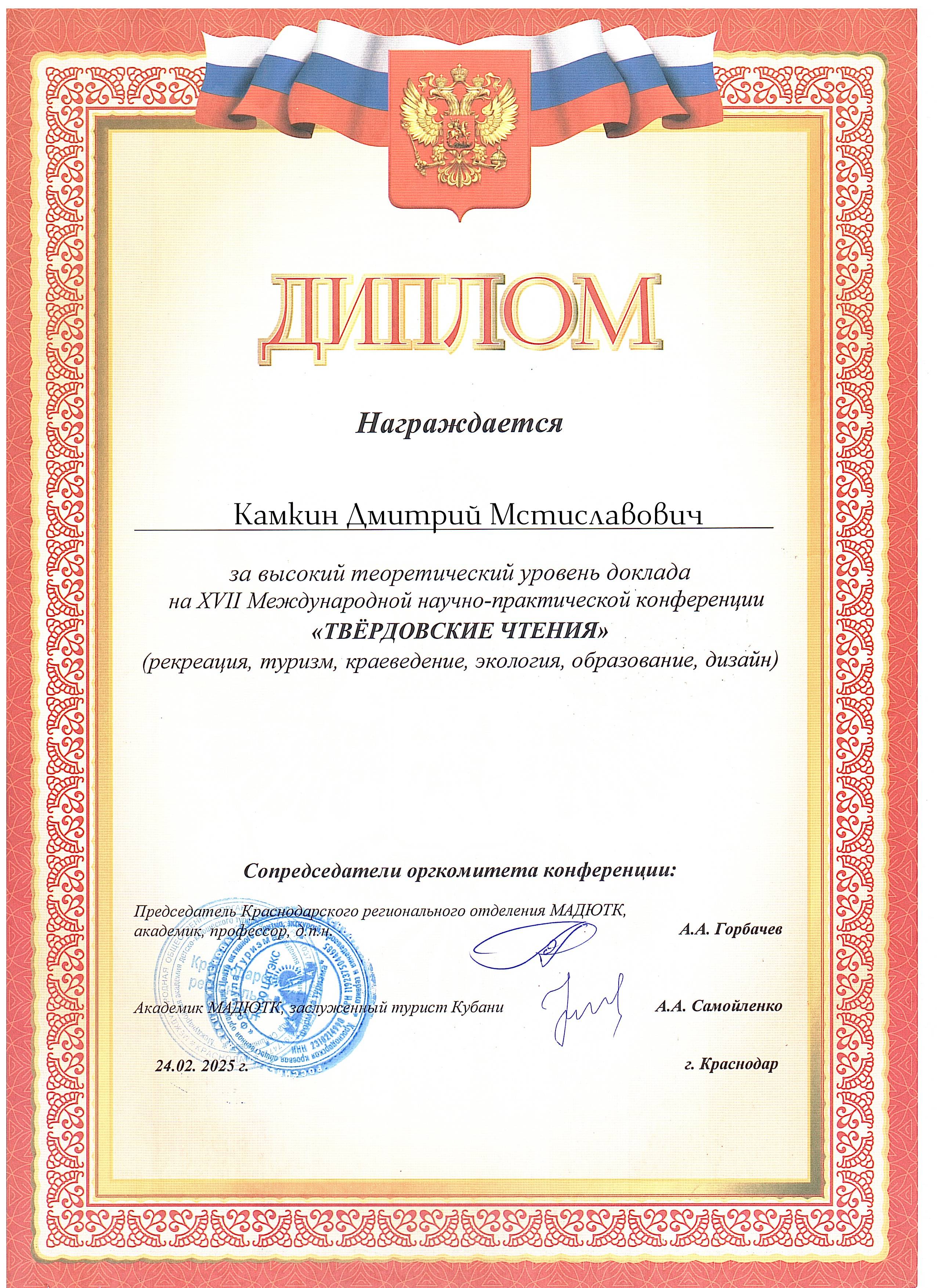 28 февраля на базе государственного бюджетного учреждения «Центр туризма и экскурсий» комиссия краеведения Краснодарского регионального отделения Русского географического общества провела Международную научно-практическую конференцию XVII "Твердовские чтения", посвященную памяти Александра Васильевича Твердого – члена Президиума Краснодарского регионального отделения Русского географического общества, путешественника, краеведа-исследователя, педагога, общественного деятеля. В работе приняли участие специалисты различных регионов России, Беларуси, Болгарии, Казахстана, Китайской Народной Республики, Польши в области активного, социального и коммерческого туризма, краеведения, представители профильных государственных органов, руководители коммерческих структур, занимающиеся организацией отдыха и туризма, преподаватели, магистранты, аспиранты, студенты колледжей и вузов.