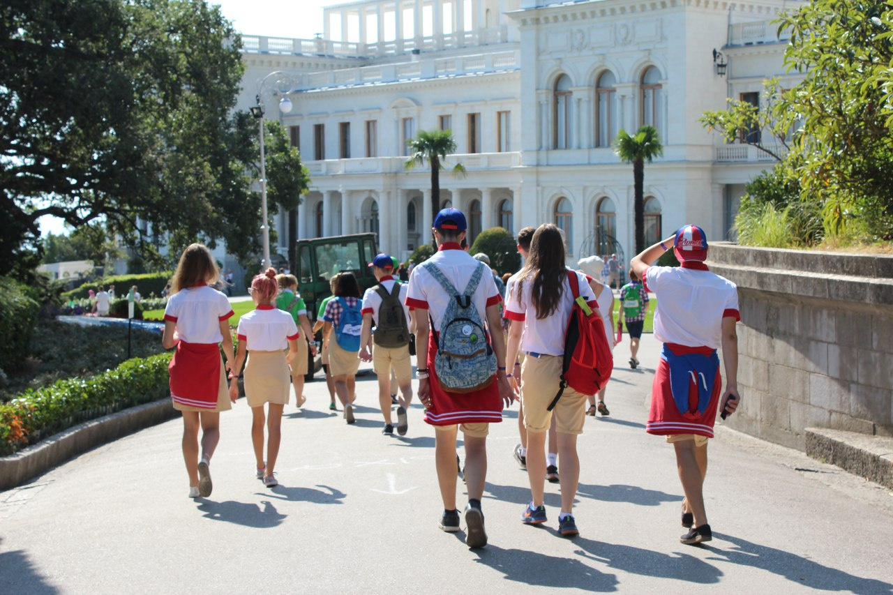 Из Массандры артековцы отправились в Ливадию. Там ребята также совершили экскурсию по внутренним покоям Ливадийского дворца и посетили выставку, посвященную семье последнего русского императора Николая Второго. Белоснежный дворец служил семье императора летней дачей.