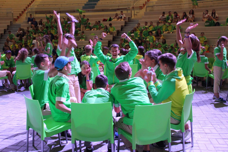На «Артек-арене» собрались все отряды лагеря. Каждый отряд разделился на две команды – одна играла в первом раунде викторины, другая – во втором. Кроме 18 отрядных команд, в игре приняла участие команда вожатых.