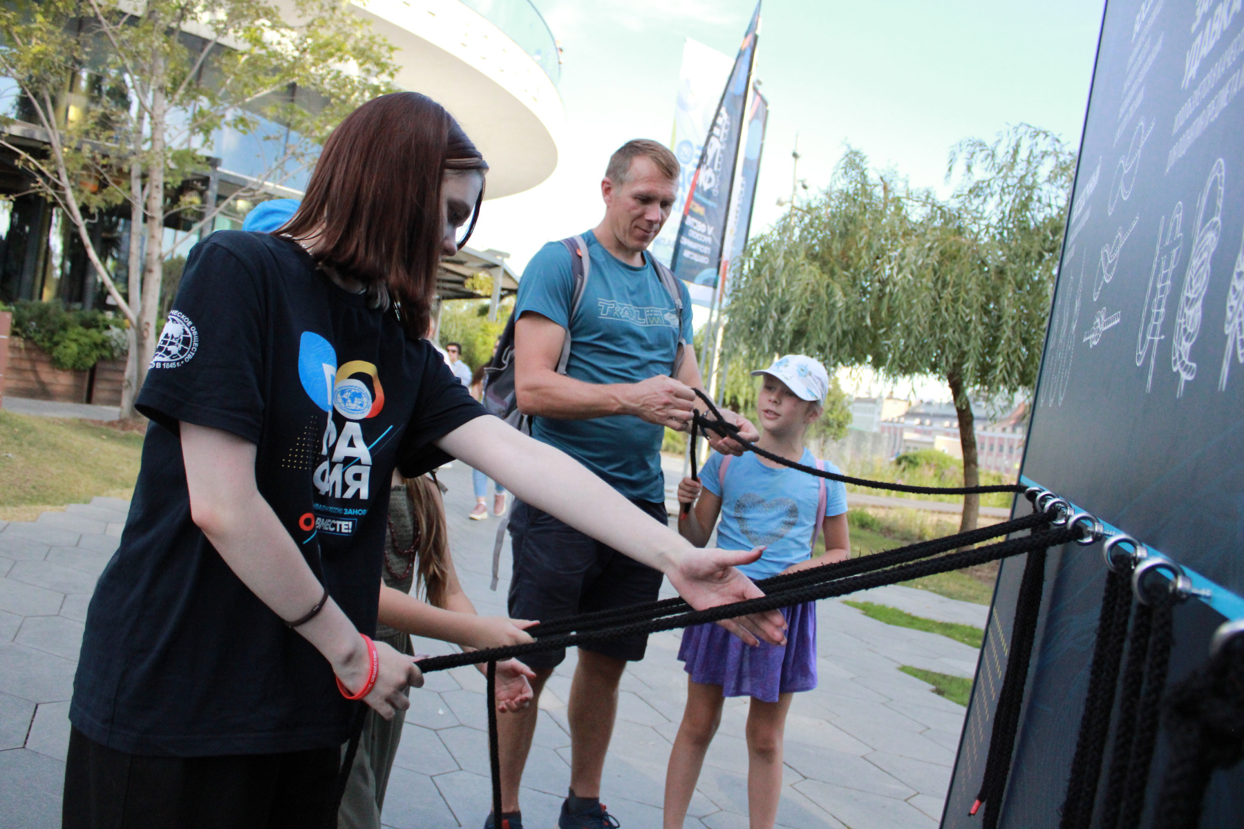 Помогали добровольцы и на одной из наиболее популярных локаций Фестиваля — "Горном квесте", развернувшимся под знаменитой "Стеклянной корой" парка "Зарядье".