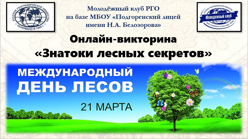 18 марта в канун Международного Дня леса Молодёжный клуб РГО на базе Подгоренского лицея имени Н.А.Белозорова в Воронежской области провёл цикл мероприятий, приуроченный к всемирной эколого-географической дате. 21 марта она ежегодно отмечается во многих странах мира, чтобы привлечь внимание общественности к проблеме вырубки лесов и совместной работе для их сохранения и восстановления.