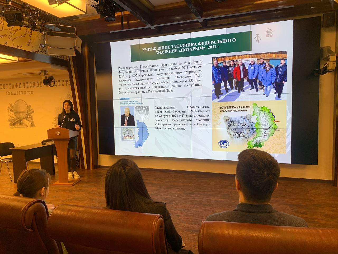 28 апреля в Штаб-квартире Русского географического общества в Москве прошёл День Хакасии. Участники встречи, организованной Молодёжным центром Русского географического общества Республики Хакасия, Хакасским республиканским отделением РГО и Заповедником «Хакасский», стали зрителями презентации документального фильма «Позарым. Экспедиция в страну снежных гор».