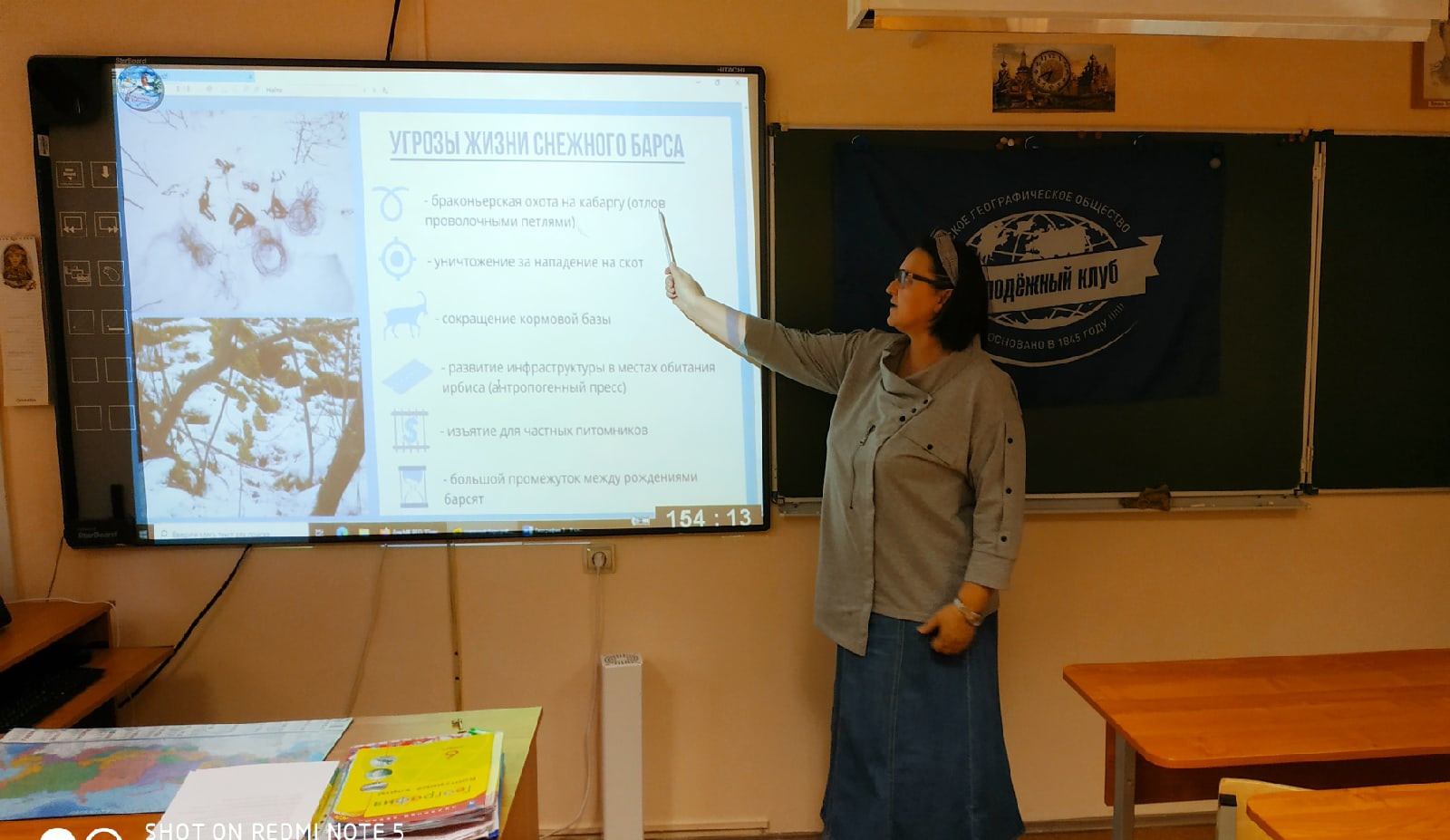 Амбассадор Сайлюгемского национального парка, учитель географии, руководитель Молодежного клуба РГО им. М.М.Пришвина в г.Сергиев-Посад, Игорь Павлович Полюдченков познакомилобучающихся 6, 9 и 10 классов АННОО "Православная гимназия имени преподобного Сергия Радонежского" и обучающихся 7-10 классов ГКОУ МО "Хотьковская общеобразовательная школа-интернат для обучающихся с ограниченными возможностями здоровья" со скрытной жизнью снежных барсов.