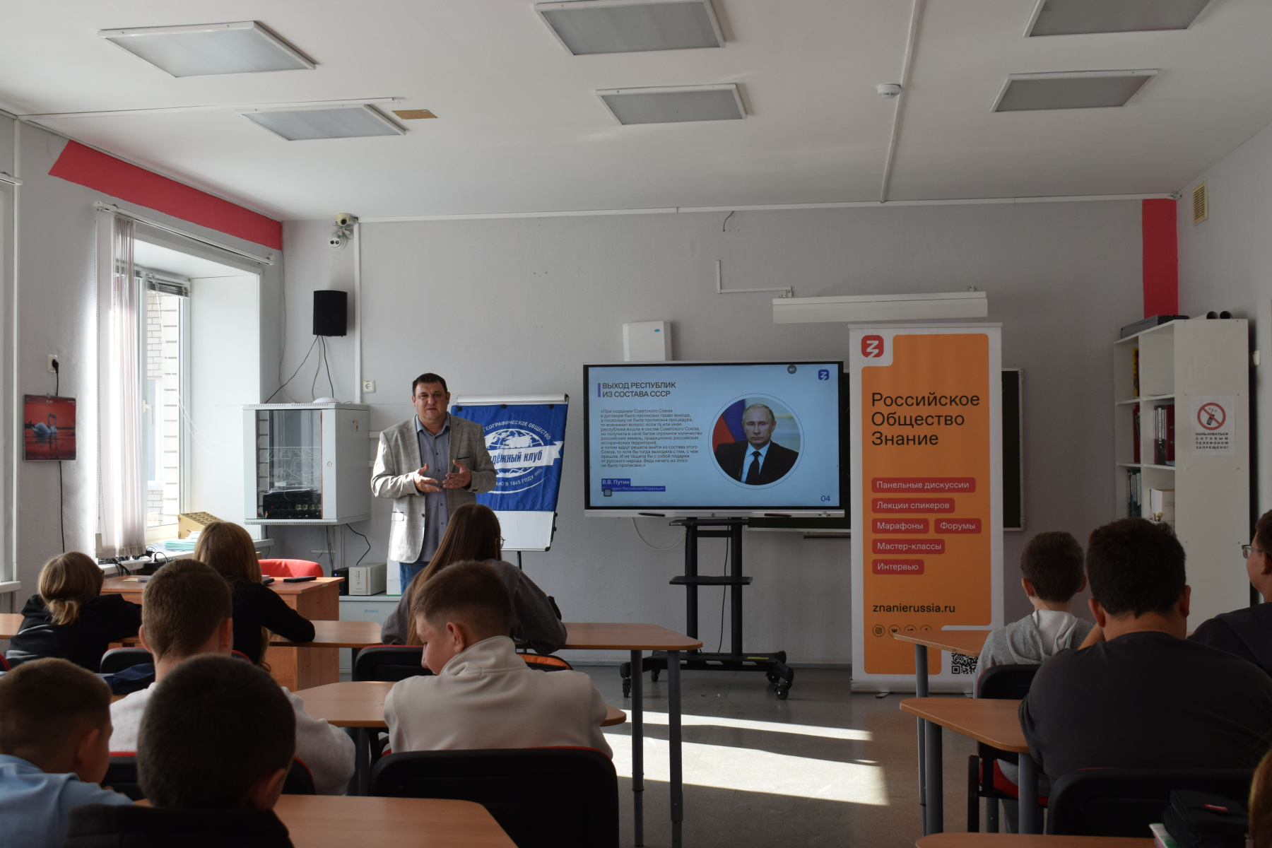 В рамках мероприятий состоялось заседание Кинолектория, в ходе которого более 80 активистов посмотрели фильм "ДНК России. Вернувшиеся территории", погрузились в увлекательное путешествие по новым регионам России: от Крыма до Севастополя, от Запорожской и Херсонской областей до Донецкой и Луганской Республик и познакомились с уникальными природными богатствами и вековыми традициями местных жителей, ощутив связь поколений и единство народа.