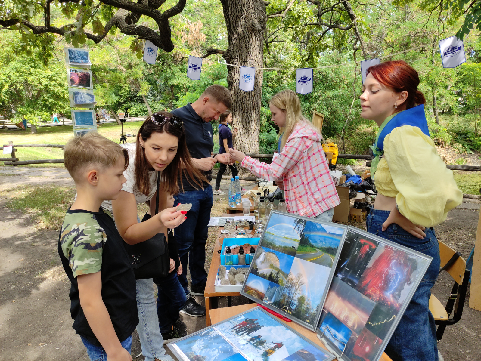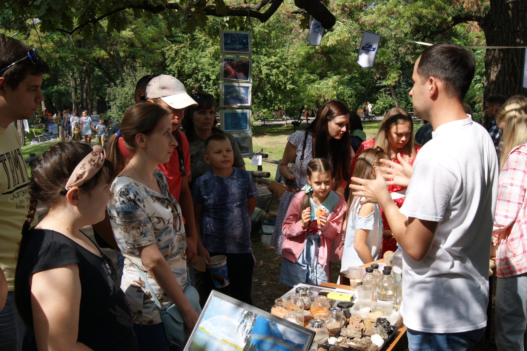 На территории Городского парка согласно план-маршруту преподаватели географического факультета представили новые достижения в области географии, а также минералогии, палеонтологии, климатологии, экологии и других наук о Земле. Детям были очень интересны выставки горных пород, приборов, используемых для анализа погодных условий, рассказы об облаках и атмосферных явлениях.