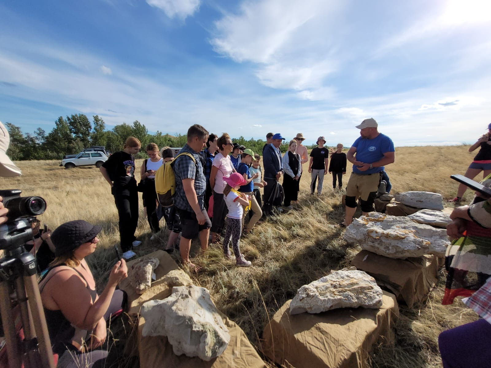 Следующим этапом программы стал выезд группы на Камышинские горы Уши, где Алексей Викторович Иванов своим рассказом погрузил всех присутствующих в разные эпохи. Каждый смог представить и древние моря, волны которых здесь плескались много миллионов лет назад и различную флору и фауну, дошедшую до нас в виде окаменелостей. Также для участников экспедиции были организованы интересные площадки, на которых они смогли узнать и посмотреть современный почвенный и растительный мир гор Уши. Самым значимым и долгожданным моментом стало путешествие участников по реке Волга на кораблях в полевой лагерь экспедиции, который расположился в районе населенного пункта Ионово. По прибытию в лагерь всех участников местные повара накормили вкусной полевой гречневой кашей. После чего участникам выдалась возможность встретиться, и пообщаться с настоящими учеными: геологами, почвоведами, географами, ботаниками и другими специалистами с различных уголков нашей страны.