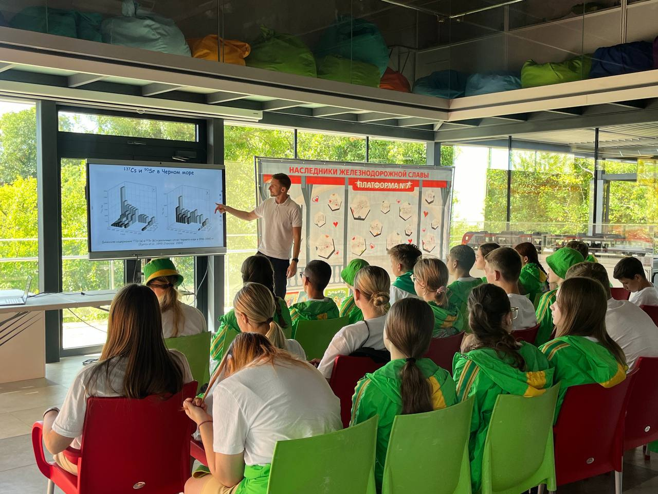 К юным географам приехал научный сотрудник отдела радиационной и химической биологии Института биологии южных морей Артём Параскив. Он рассказал о том, как ученые следят за состоянием морей, проводят экспедиции и измеряют радиационный фон.