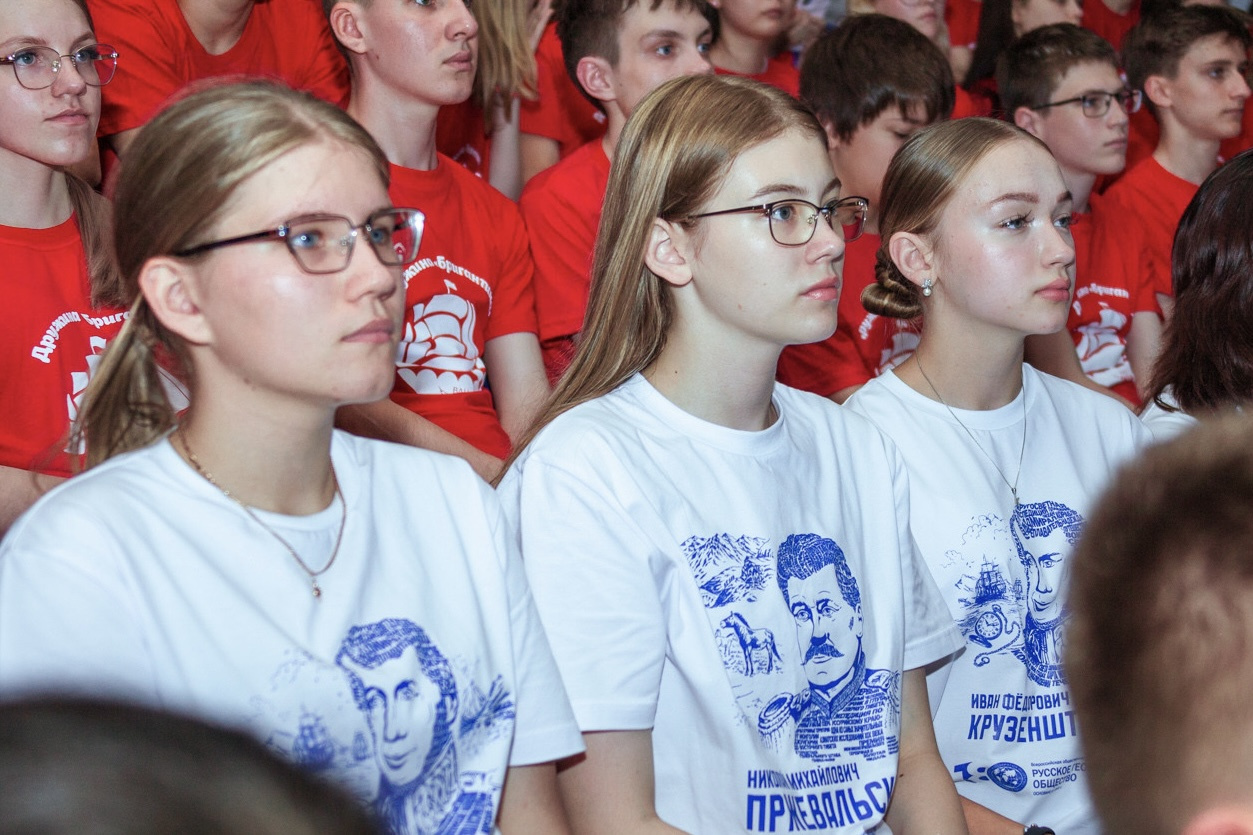 Юным исследователям вручили Дневники первооткрывателей и футболки с портретами великих русских географов — Федора Литке, Петра Семенова-Тянь-Шанского, Ивана Крузенштерна, Николая Пржевальского, Николая Миклухо-Маклая. Эти имена стали для ребят символами мужества, научного поиска и любви к Родине.