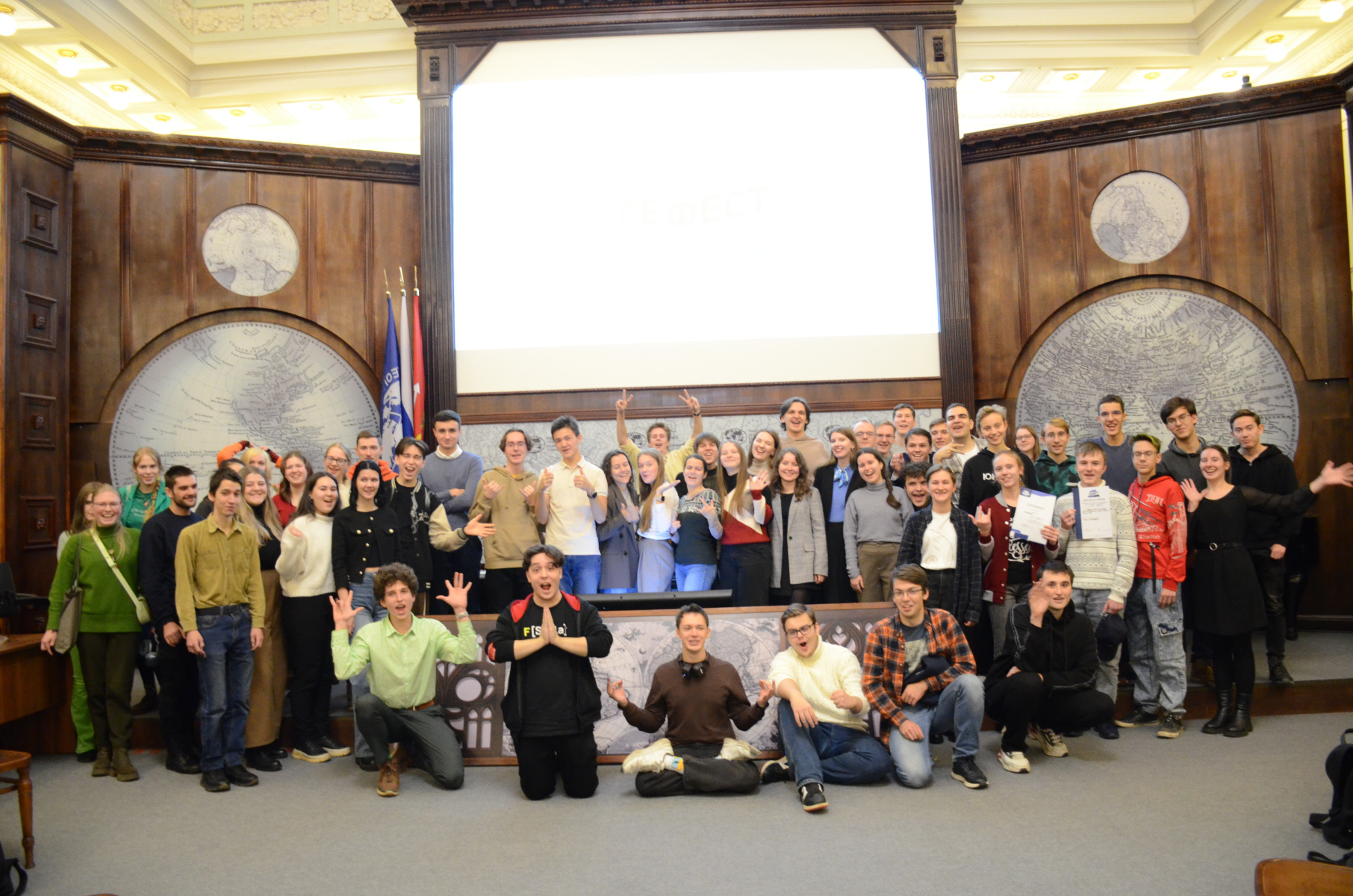 Двенадцать команд находчивых юношей и девушек собрались в исторической Штаб-квартире Русского географического общества в Санкт-Петербурге, чтобы принять участие в многоэтапной викторине — ГеФесте. Суть ГеФеста заключается в прохождении трех этапов в различных механиках — таких, как «Десятка», «Катакана» и «Своя игра», — которые посвящены географии и смежным наукам.