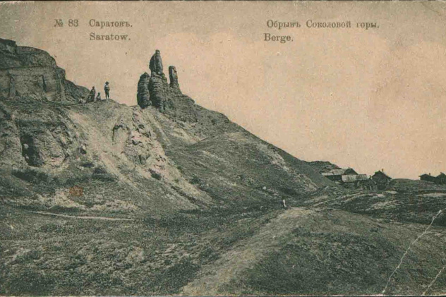 Останец Три монаха расположен в Маханном овраге на восточном склоне Соколовой горы, вблизи посёлка Затон. Эта созданная самой природой достопримечательность, представляет собой высокий цилиндрический, поднятый вверх палец, за что местные жители нарекли его "Чёртов палец". Видимая высота природного памятника около 4 м, а ширина около шести.