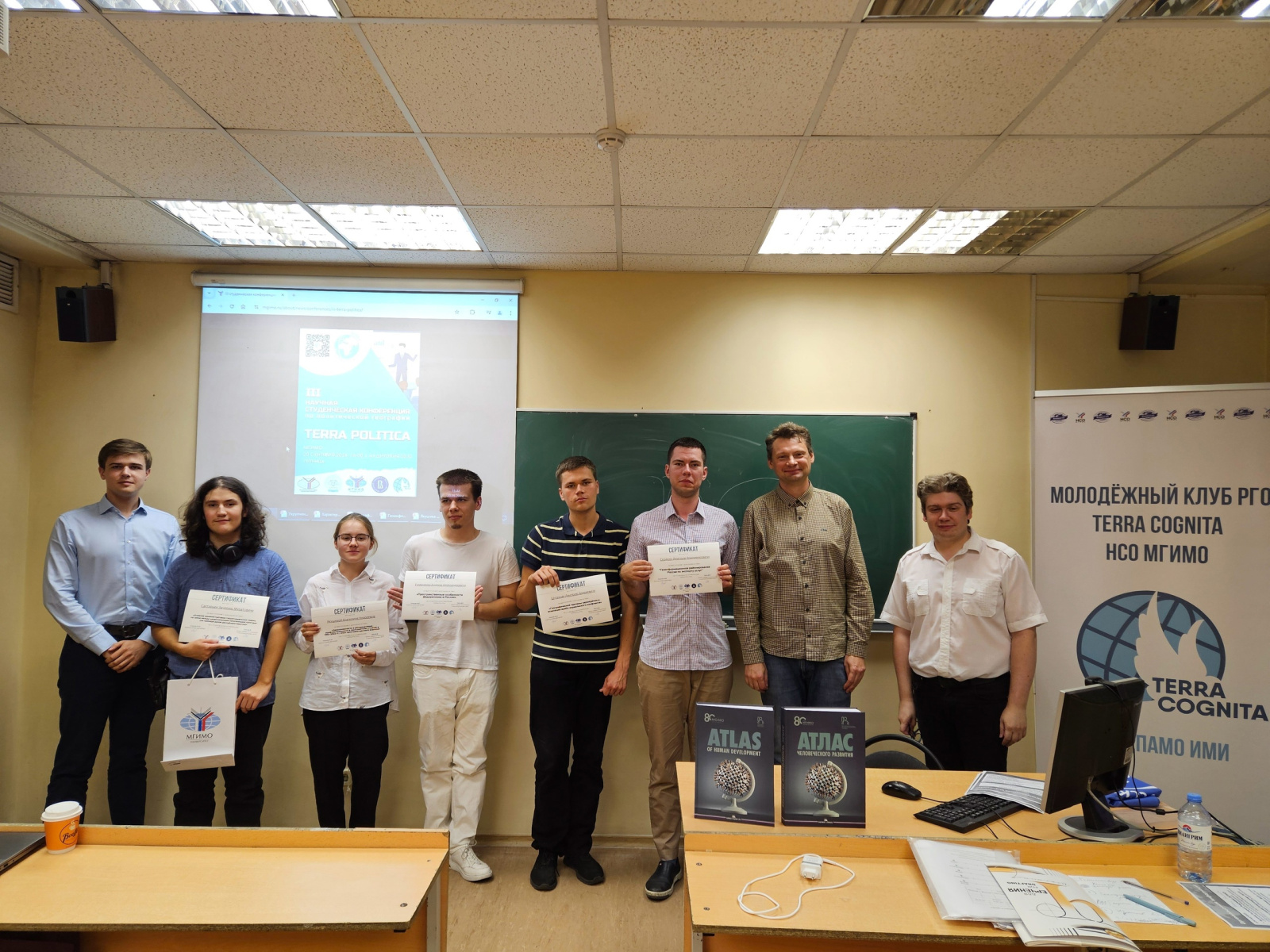 В декабре представители МК РГО Terra Politica Назар Курбанов и Никита Тихонов были награждены грамотой Х Всероссийского конкурса на лучшую научную работу студентов и аспирантов в области регионоведения и международных отношений имени профессора С.Б.Лаврова, проводимого Санкт-Петербургским государственным экономическим университетом. Исследование студентов посвящено использованию когнитивного картографирования для анализа современного состояния и эволюции представлений о делении европейского континента на Запад и Восток.