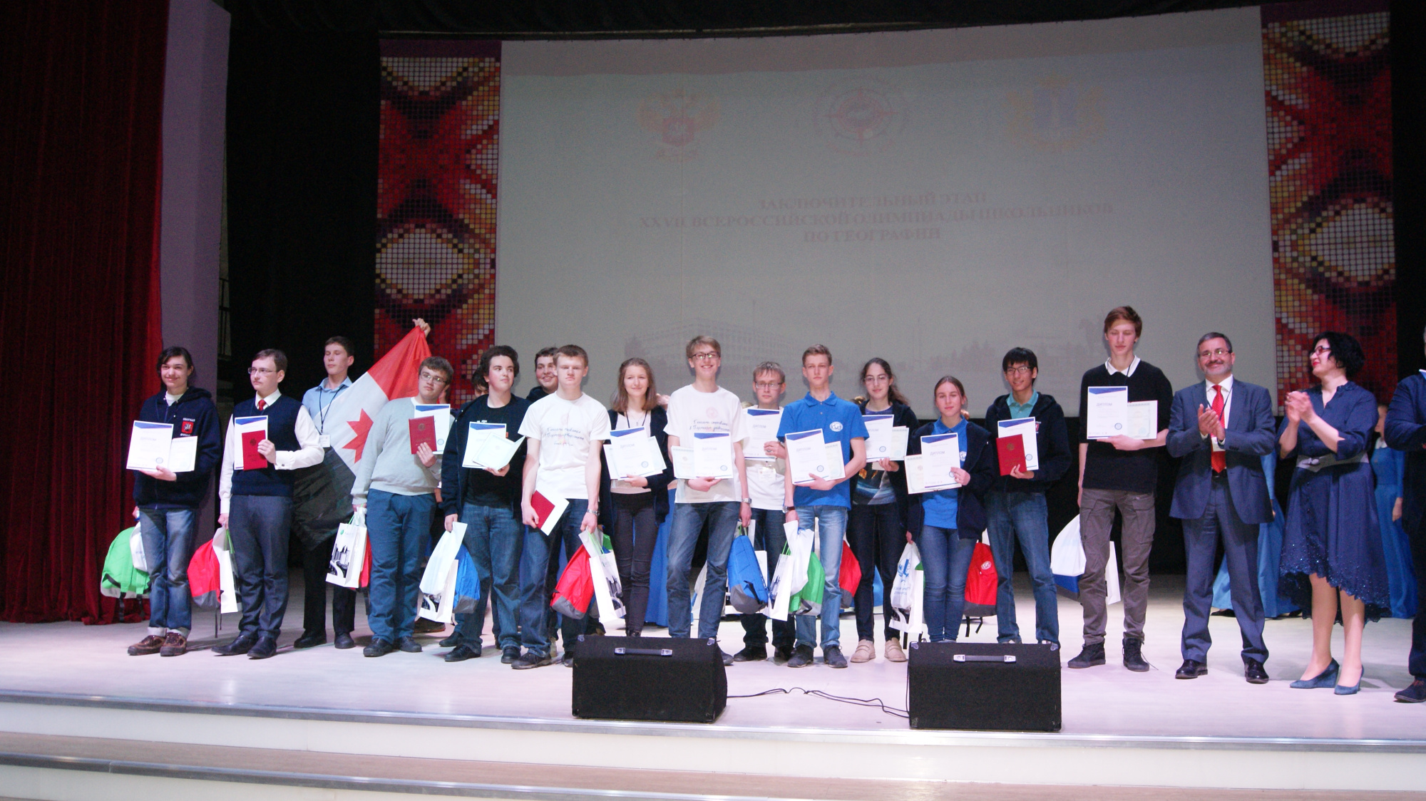 Награды и дипломы для победителей и призеров олимпиады были вручены от организаторов проекта, в частности и от Русского географического общества. В завершении церемонии выступили лучшие танцевальные и музыкальные коллективы региона.