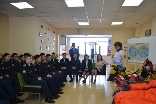Марианна Кызыл-ооловна, член команды «7 вершин мира - Тува», рассказала о своих восхождениях на вершины мира. Она побывала на 5 материках и покорила пять высочайших вершин – Эльбрус, Килиманджаро, Аконкагуа, Мак-Кинли, Косцюшко, Эверест с тибетской стороны. Кадетам также была предоставлена возможность изучить альпинистское снаряжение и получить ценные советы бывалых альпинистов.