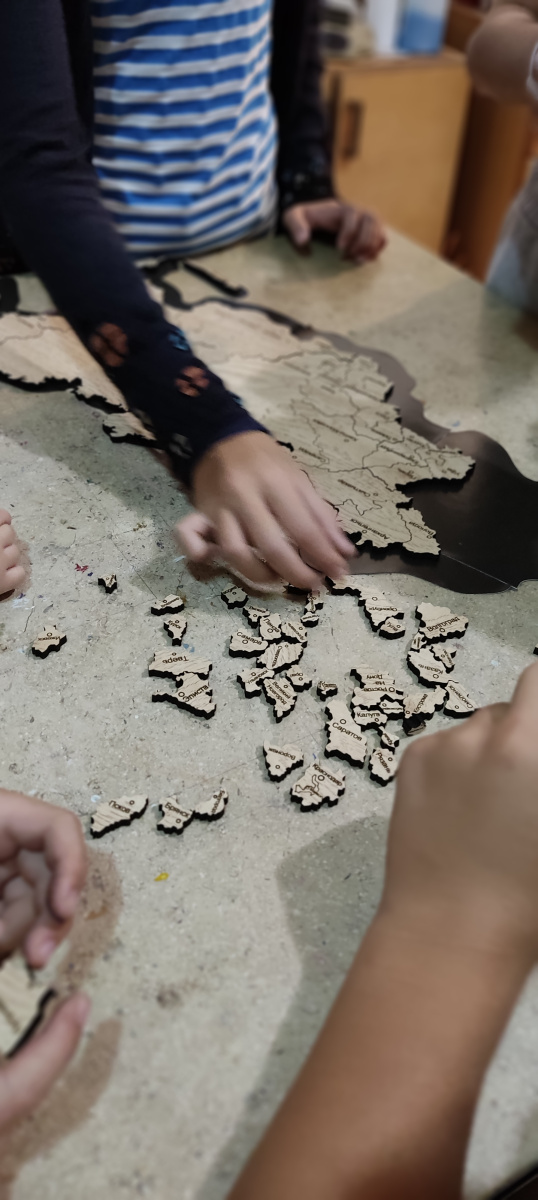 "Сложнее всего было собрать ту часть, которая ближе к Европе. Там очень много небольших регионов. Мы даже воспользовались лупой, чтобы разглядеть названия", - поделился Адам, активист Молодежного клуба Русского географического обещства "Сахара"