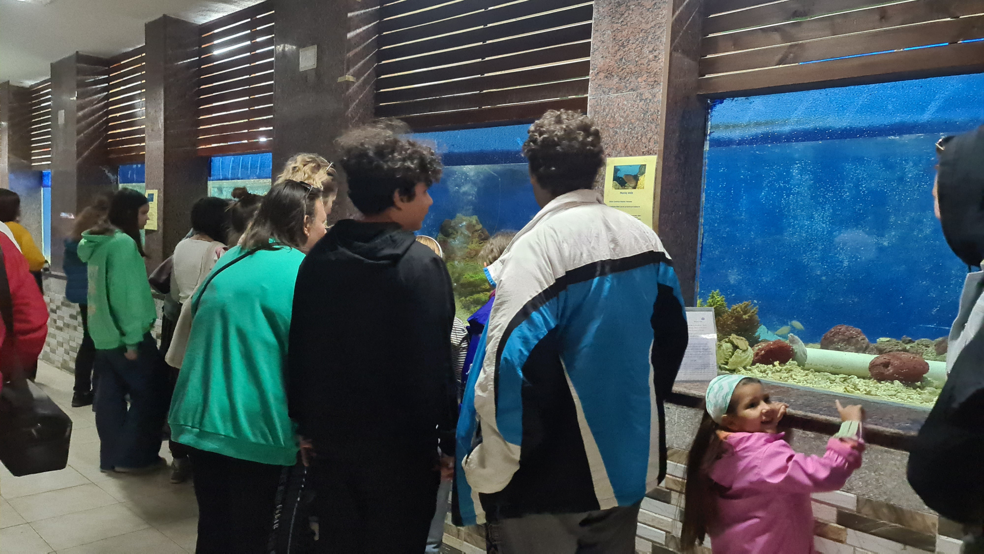 Экскурсию по аквариуму и музею провел доктор Мохсен Якут, сотрудник Национального института океанологии. В экспозиции музея представлены образцы фауны Красного моря, многие из которых уже совсем не встречаются или мало встречаются, включая ламантинов, гигантскую манту, гигантских морских черепах.