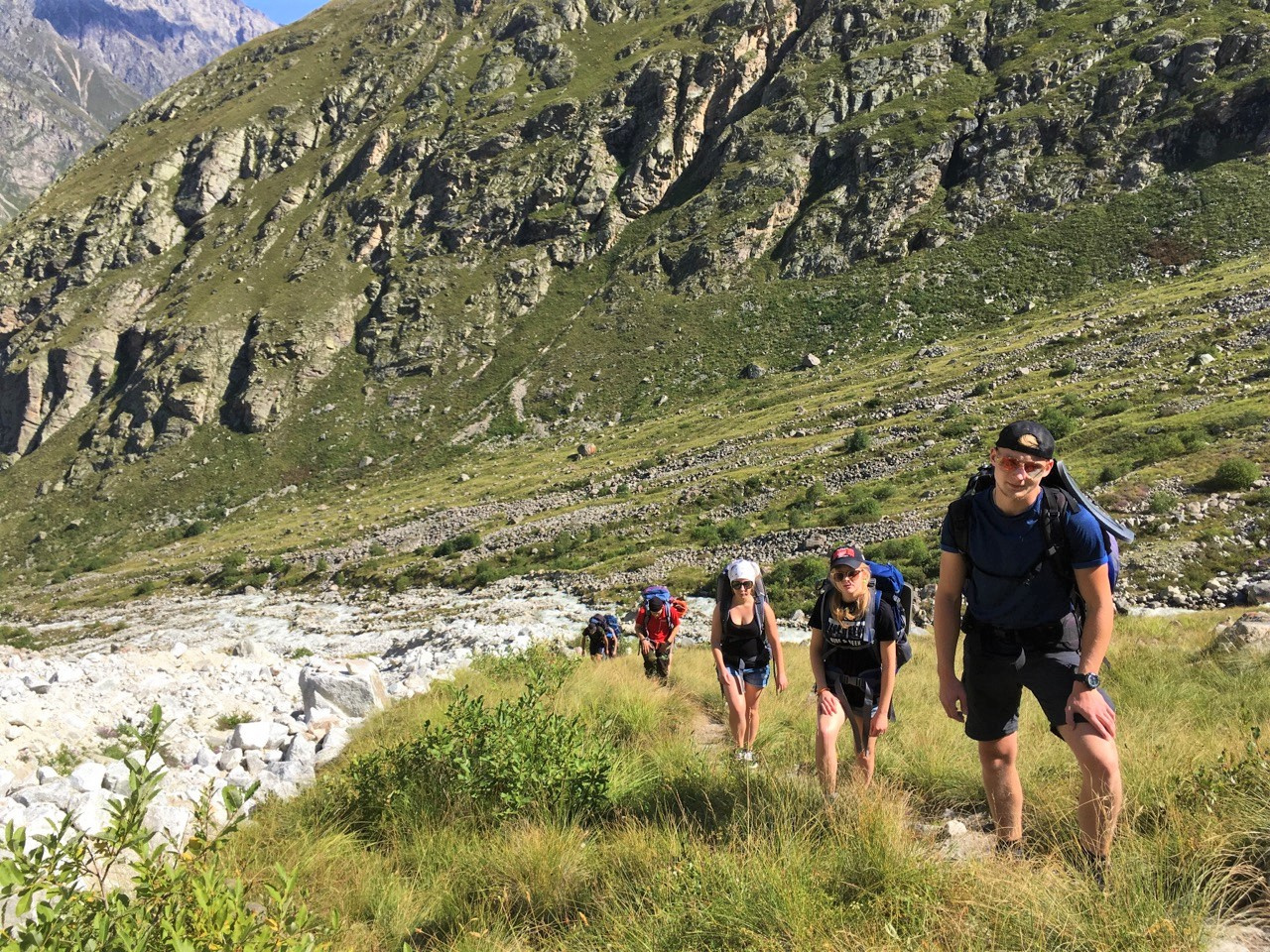 Участники научного похода исследовали уникальные объекты района: Безенгийское ущелье, ледник Мижирги, Безенгийский ледник, реки и водопады.
