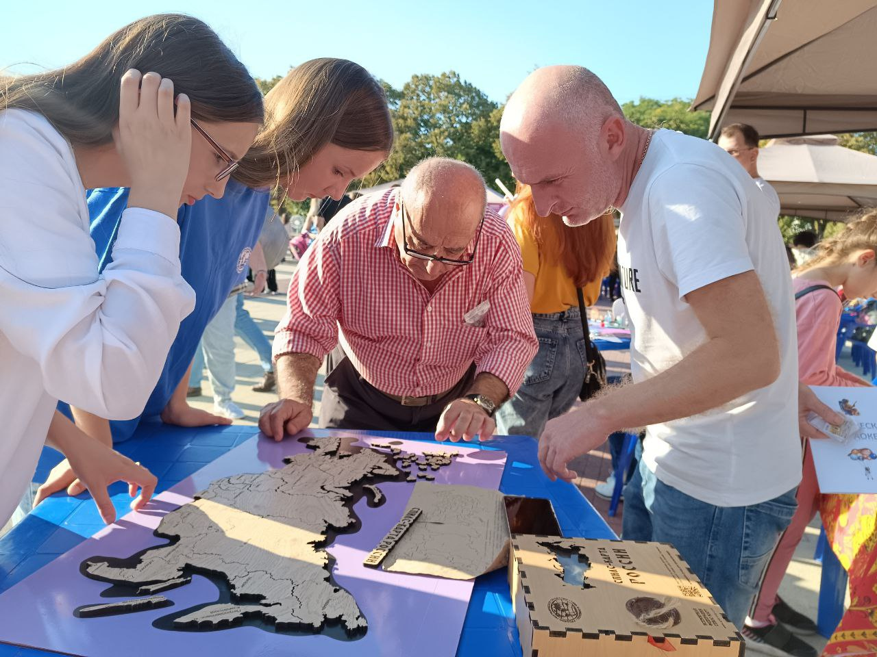 В этот раз активисты Молодежного клуба РГО и студенты Армавирского юридического техникума проводили мастер-класс по сбору магнитной карты субъектов Российской Федерации в парке "Сфинксы" на площадке Армавирского местного отделения Русского географического общества в рамках фестиваля-ярмарки НКО, проходившего в Армавире 23 сентября 2023 года.