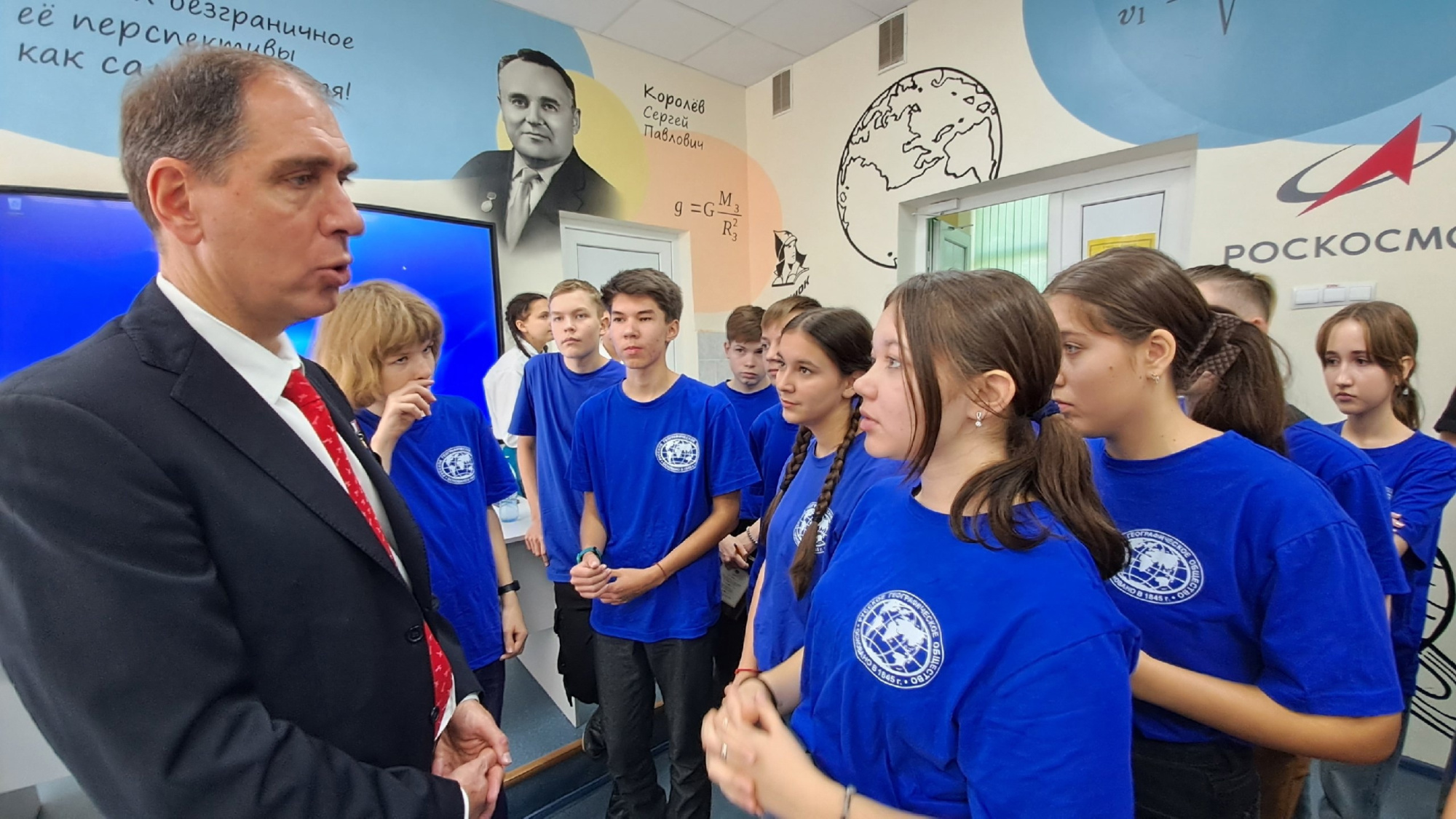 Юные географы профильной смены РГО «Мир открытий» побывали на уроке физики с героем России, космонавтом Сергеем Александровичем Волковым.