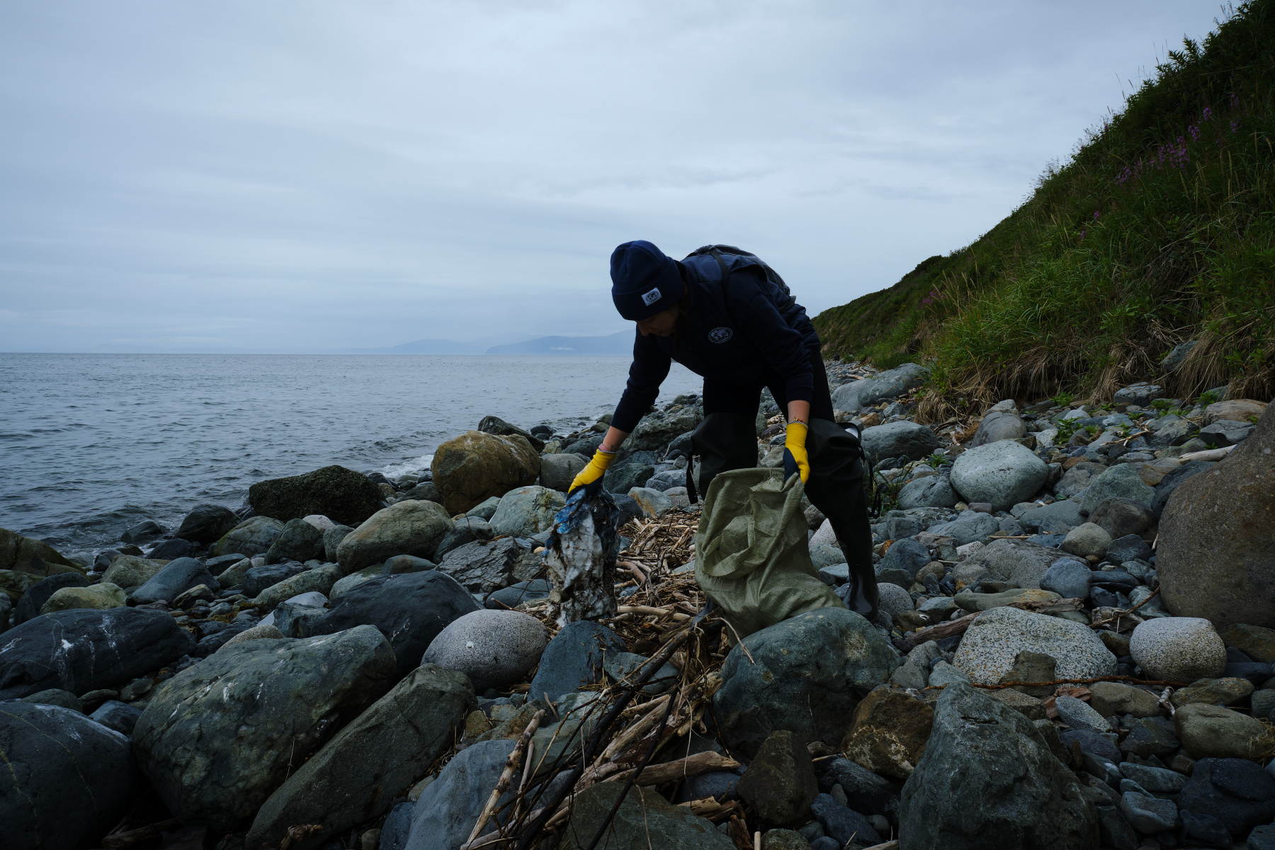 Добровольцы очищали пляжи от рыболовных снастей, металлолома и пластиковых бутылок. Побережья полуострова Кони, хоть и заповедные, достаточно серьёзно загрязнены отходами. По массе преобладают рыболовные снасти и металлолом, а наиболее многочисленны пластиковые бутылки, которые добровольцы сдали на переработку в Магадане. Работы по учёту и сортировке мусора проводились на четырёх участках. На западном побережье было собрано 9 кг отходов, у кордона «Скалистый» — 13 кг, на пляже у ручья Бодрый — менее 1 кг, а у кордона «Мыс Плоский» — около 3 кг.«На острове Кони в Магаданской области мы словно оказались в другом мире: вокруг по-своему деловито бродили медведи, а от кордона тянулась пешая тропа, ведущая на сопку высотой 157 метров — туда, где море и горы встречаются в тишине», - отметил Станислав Кущев, руководитель Молодёжного клуба РГО «Горные люди», доброволец проекта.