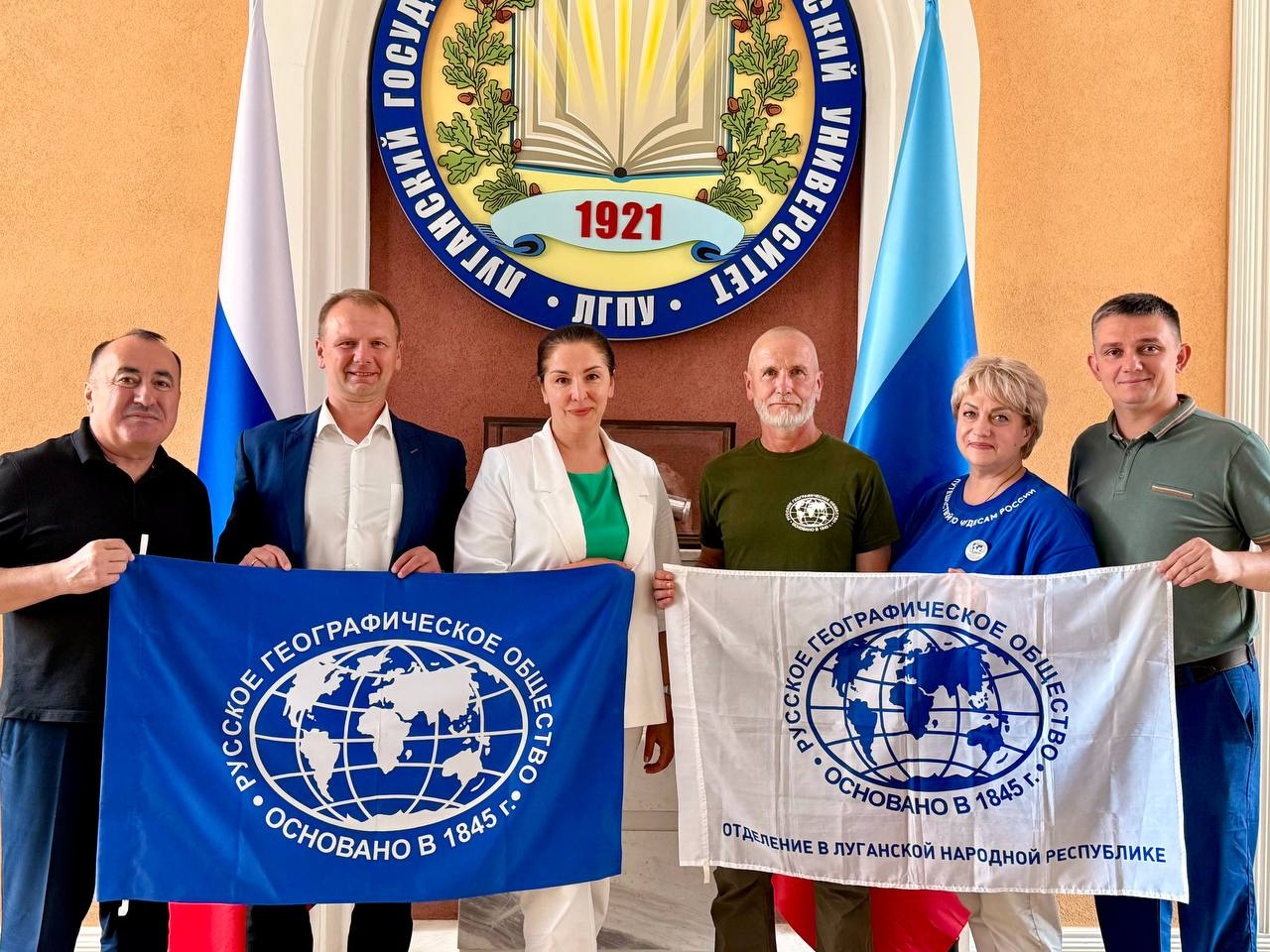 В стенах ЛГПУ состоялась рабочая встреча с гостями, участниками которой стали председатель регионального отделения РГО в ЛНР, ректор ЛГПУ Жанна Марфина, председатель Попечительского совета ЛГПУ, член регионального совета РГО Павел Пилавов, заместитель председателя Попечительского совета РГО в ЛНР Александр Ермоленко, руководитель молодежного центра РГО ЛНР Юлия Заруцкая.