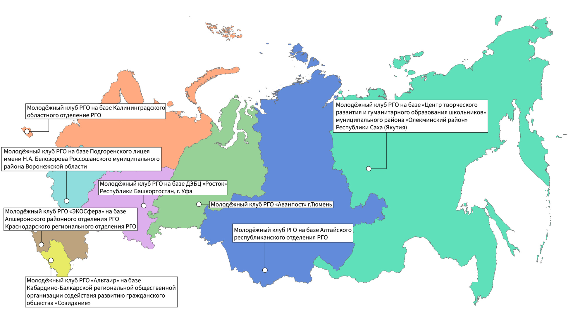 1. Молодёжный клуб РГО на базе Центра творческого развития и гуманитарного образования школьников муниципального района «Олекминский район» Республики Саха (Якутия)