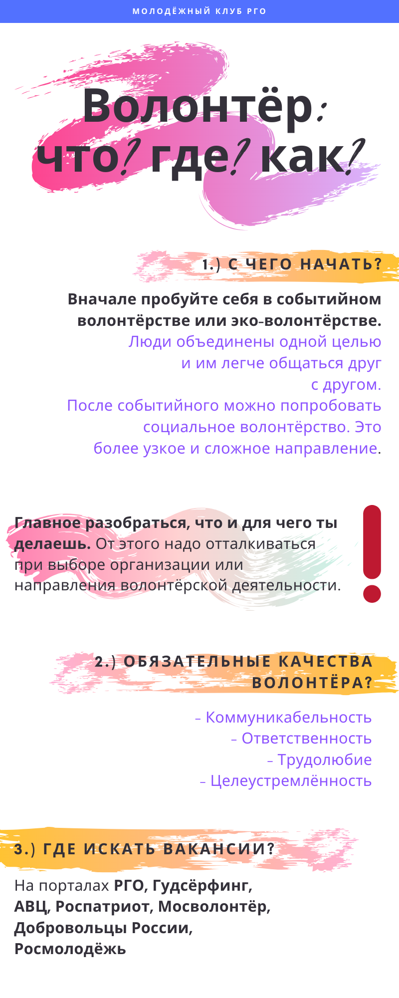 Но как же становятся волонтёрами? Мы поговорили с добровольцами, которые участвовали в наших проектах и имеют немалый опыт волонтёрской деятельности, и на основе их советов сделали подборку полезных лайфхаков для новичков.