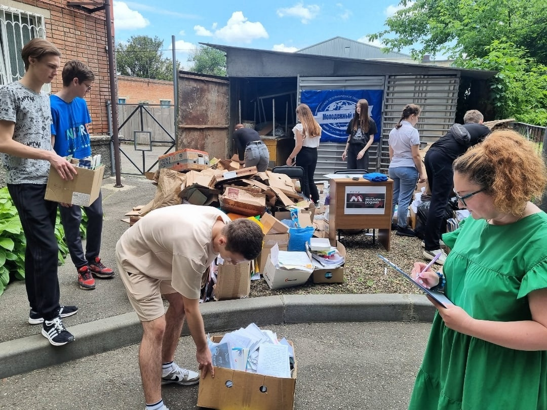 6 июня активисты МК РГО "Салют" организовали в Армавирском юридическом техникуме сбор макулатуры в рамках Всероссийской экологической акции "Миллион – Родине". Средства, полученные от сдачи вторсырья на переработку, будут направлены на гуманитарную помощь семьям ЛНР, ДНР и Запорожской области, оказавшимся в трудном положении, а также на предоставление поддержки общеобразовательным учреждениям, находящимся на территориях вновь присоединенных субъектов РФ, в целях подготовки к новому учебному году.