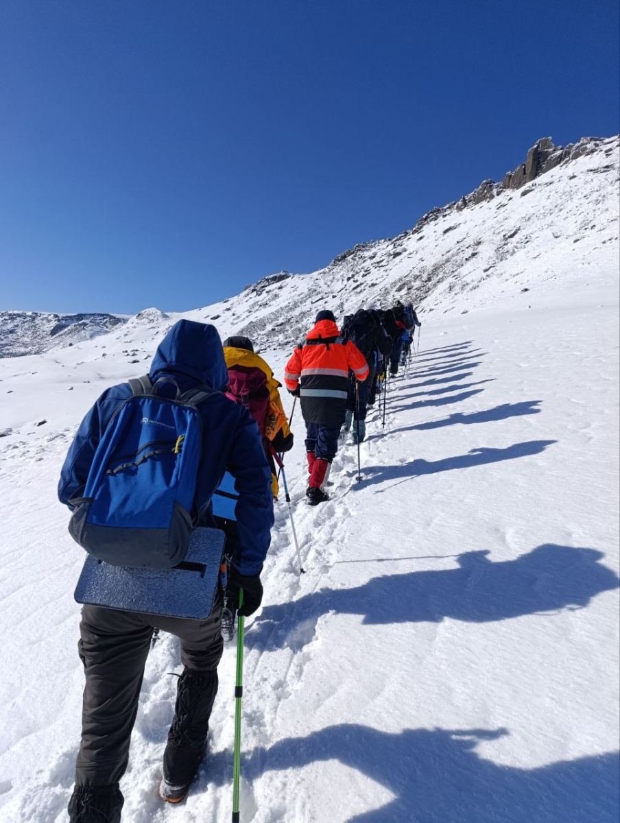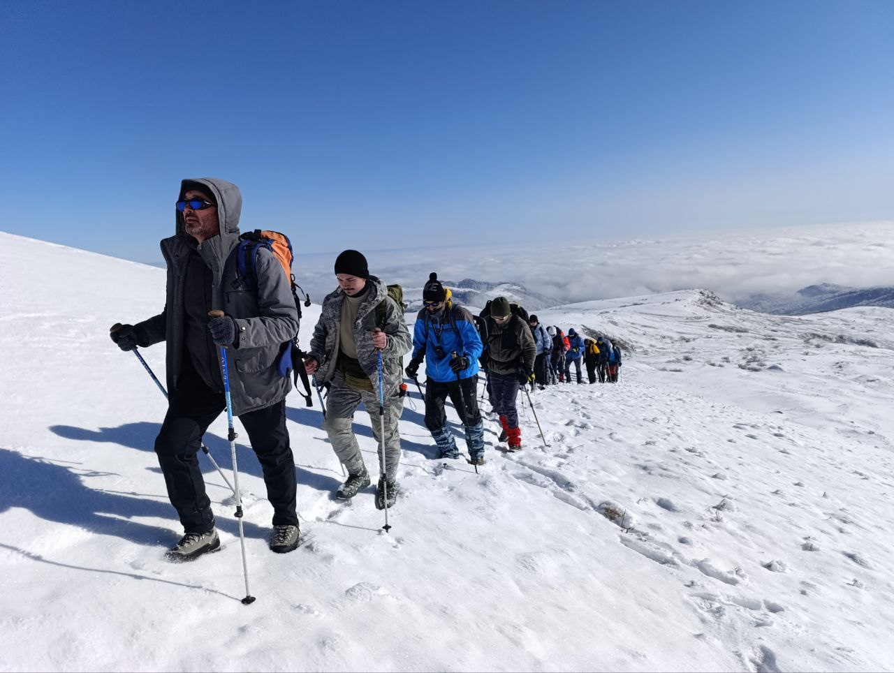 В минувшие выходные состоялось ежегодное зимнее восхождение команды Молодежных клубов РГО «Альтаир» и «Горные люди». Восхождение на вершину Таракла было посвящено Году защитника Отечества и 80-летию Победы в Великой Отечественной войне.