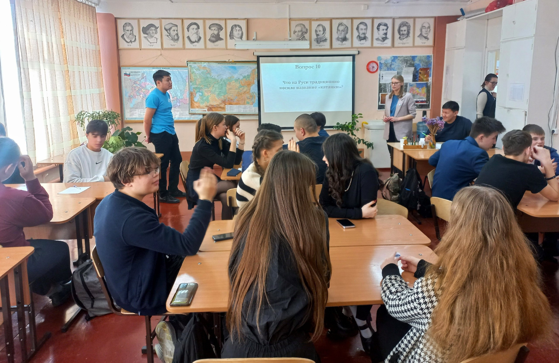Команды 8-9 классов путешествовали по карте России, знакомясь с народами и их традициями. Свою сноровку участники показали на практике, разучивая элементы народных танцев. Старшие участники вспомнили и проверили свои знания о родном регионе: ответили на вопросы викторины, узнали города по описанию и собрали спилс-карту Иркутской области.