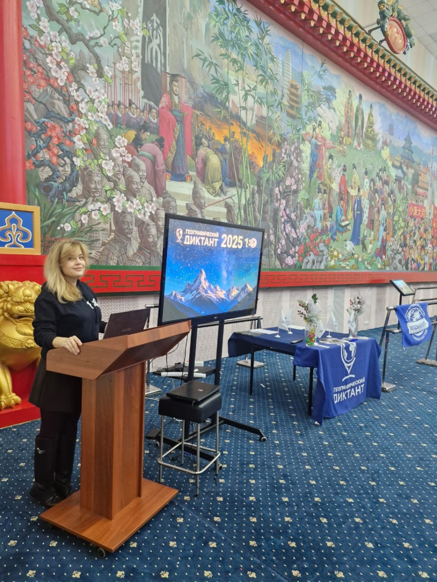 По-настоящему природная площадка удивила гостей в Карачаево-Черкесии: Клуб РГО «Белалакая» вместе с горно-спортивным клубом «Архыз» организовал мероприятие в природных Сырных пещерах возле Карачаевска. Ребята выполнили задания Диктанта, а затем отправились исследовать окрестности, водопад и нарзанные источники. В Кабардино-Балкарии Молодёжный центр РГО и Молодёжный клуб РГО «Альтаир» провели Диктант в Министерстве курортов и туризма, где рассказали гостям о развитии туризма и краеведения. В Донецком Республиканском краеведческом музее активисты Клуба «Донбасс» впервые приняли участие в очном формате. Руководитель Клуба отметила, что акция вдохновляет студентов на более глубокое изучение географии и родного региона. Также в регионе организовал свою площадку на базе Донецкого госуниверситета Молодёжный клуб РГО «Компас Донбасса». В Якутии, где площадку в Центре творческого развития и гуманитарного образования школьников организовал Молодёжный клуб РГО «Олёкма», школьники также открывали для себя новые факты о России.