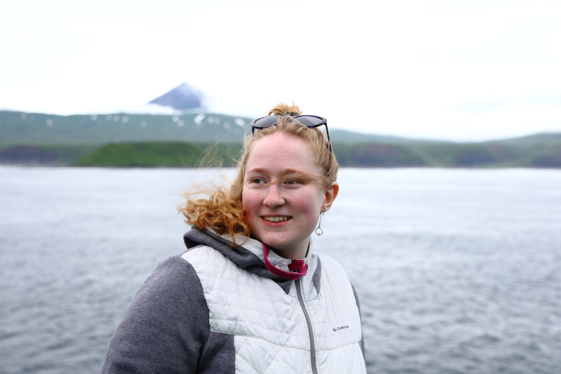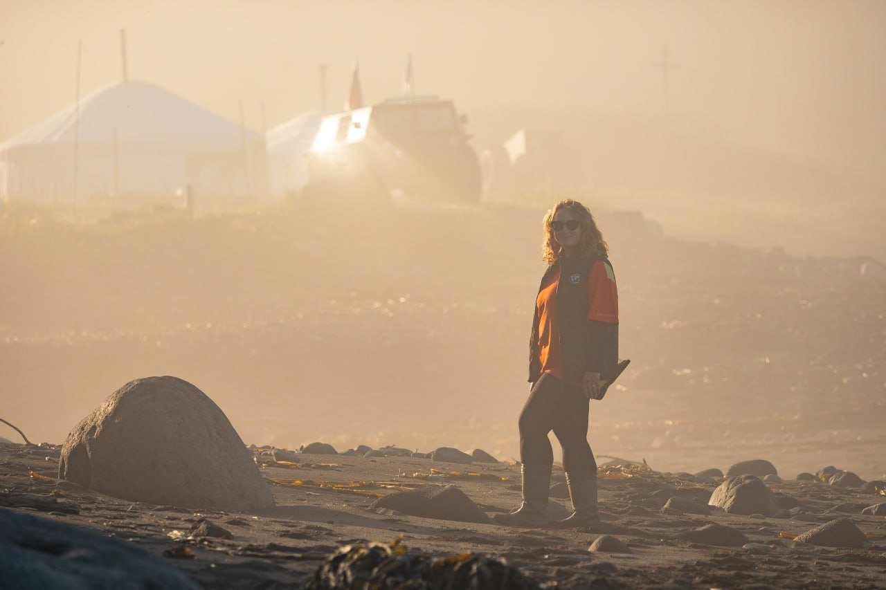 Марина: Состав экспедиции около 90 человек и один вездеход Феникс. Для меня это был первый и волнительный сезон. Приятно было видеть знакомые лица в составе экспедиции - наших медиадобровольцев и конечно же Антона. В этом году было 2 большие группы - около 60 человек отправились на остров Онекотан (в том числе и я), и около 20 - на Матуа. Мы испытали на себе 2-х балльный шторм на пути к Онекотану и трудности с выгрузкой на остров - нам не везло с погодой. После того, как личный состав Онекотят был высажен на остров, БДК отправился к берегам Матуа.